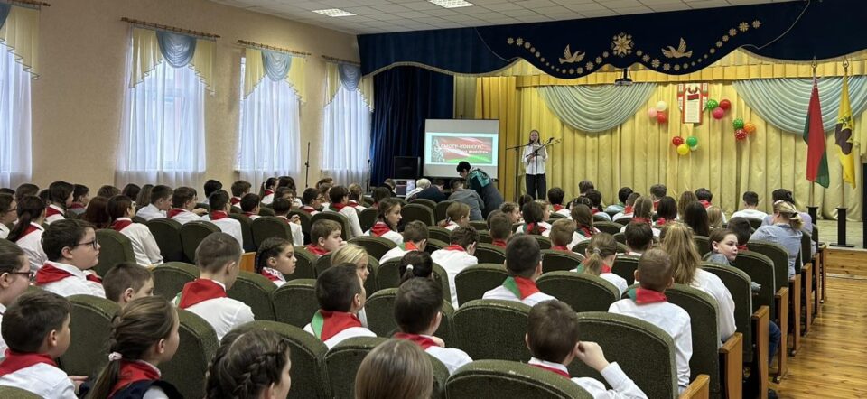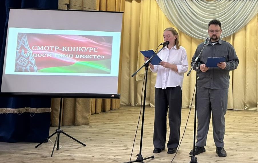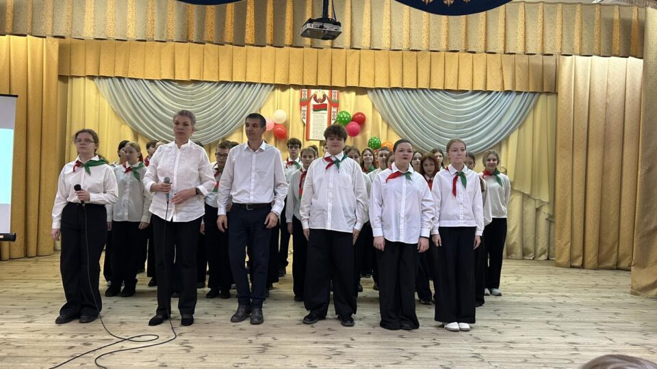 Более 100 учащихся 5-8 классов исполняли Государственный гимн Республики Беларусь по параллелям. Очень приятно было наблюдать, что все пионеры добросовестно отнеслись к исполнению гимна, используя атрибутику членов БРПО. Не остались в стороне и классные руководители, которые активно принимали участие в смотре-конкурсе.