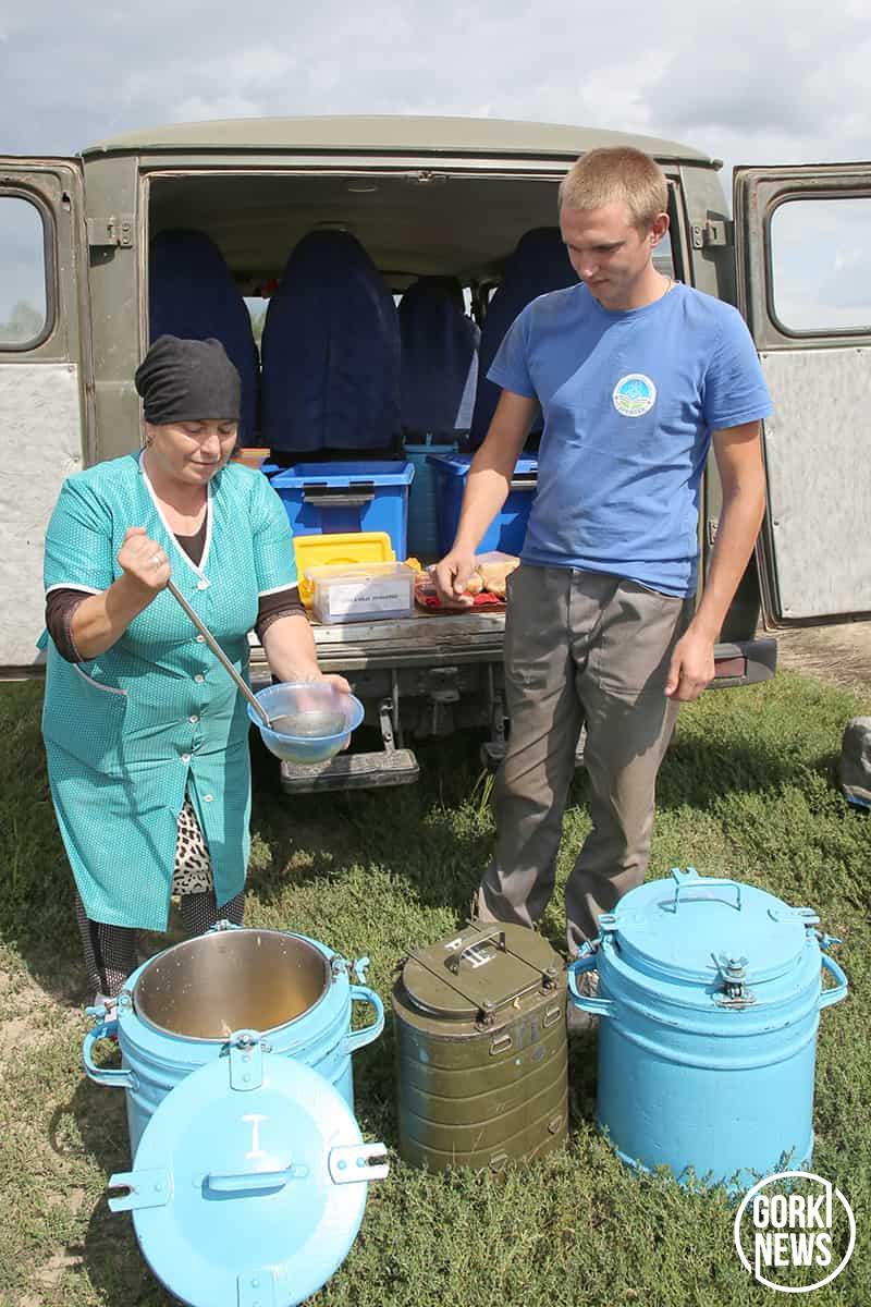 Бойцов студотряда обеспечили спецодеждой, инструментами для ремонта, 2-разовым бесплатным горячим питанием, которое заказывают в КСУП «Овсянка имени И. И. Мельника». Раздатчица обедов Елена Дагий говорит, что очень важно накормить ребят вкусно и хорошо, чтобы у них были силы работать. Привезли горячий гороховый суп, кашу со свининой. Каждому по бутылке минеральной воды. На ужин вместе со вторым блюдом всегда дают сыр, сметану.