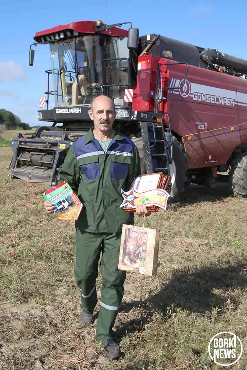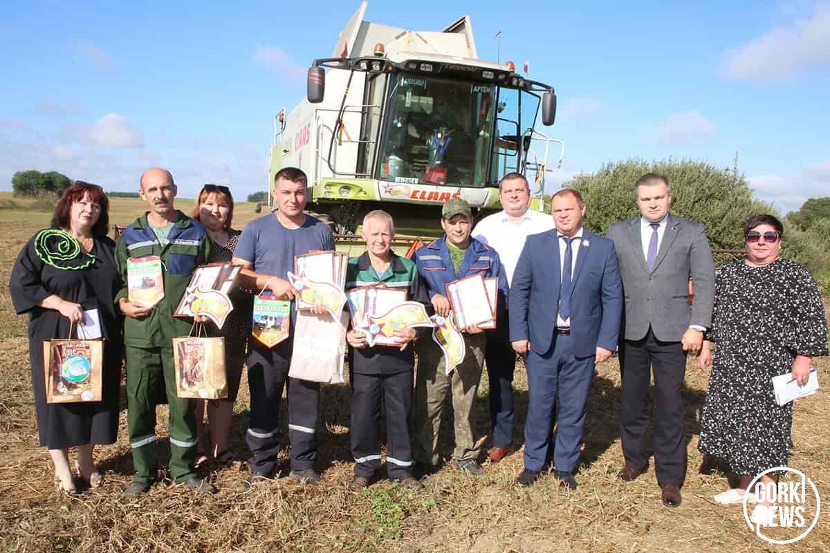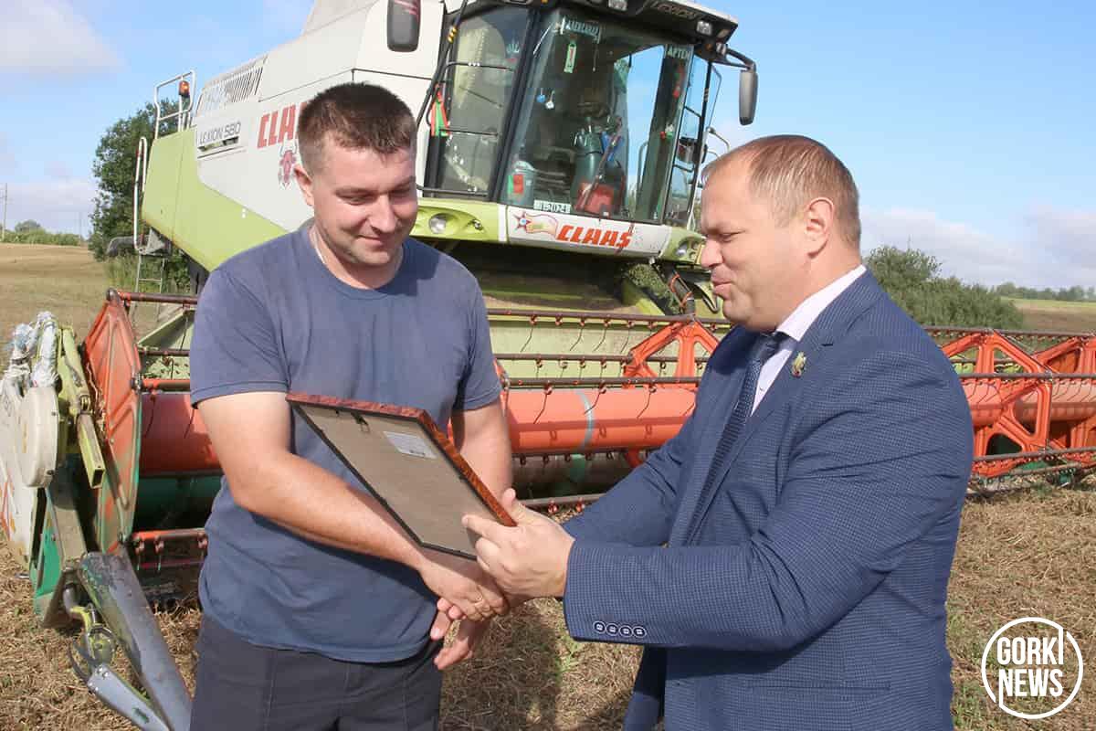 Поздравили наших героев с трудовой победой и вручили ценные подарки, денежные премии начальник управления по сельскому хозяйству и продовольствию райисполкома Андрей Саланинка, председатель РК профсоюза работников АПК Елена Чаплыгина, директор сельхозпредприятия Алексей Двойнишников, председатель профкома Екатерина Полякова. Алексей Викторович чествовал также комбайнеров Александра Якушева и Сергея Сорокина.