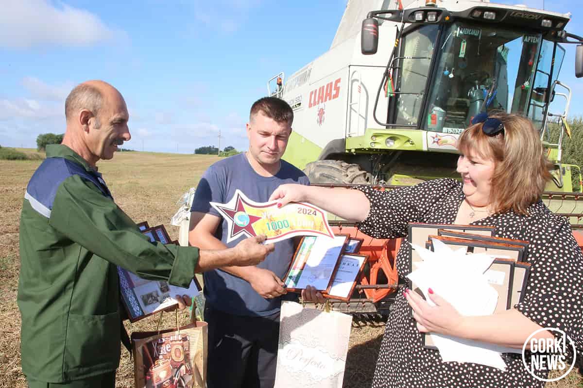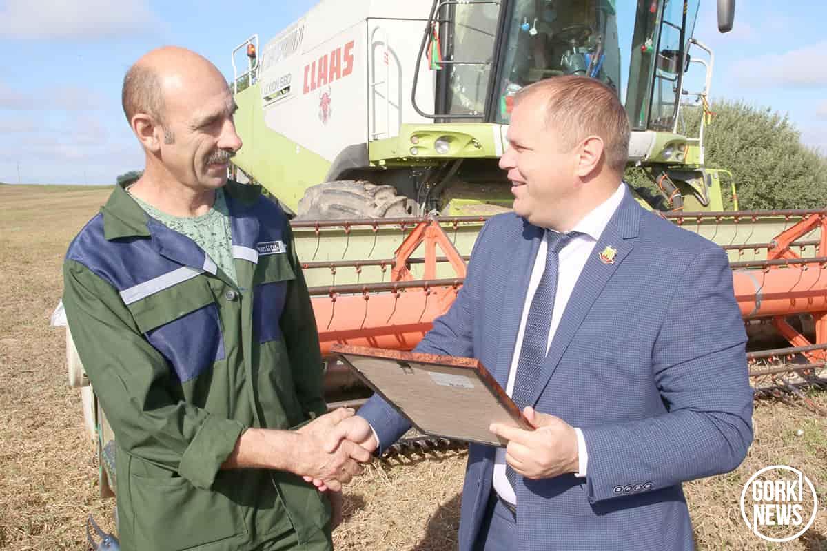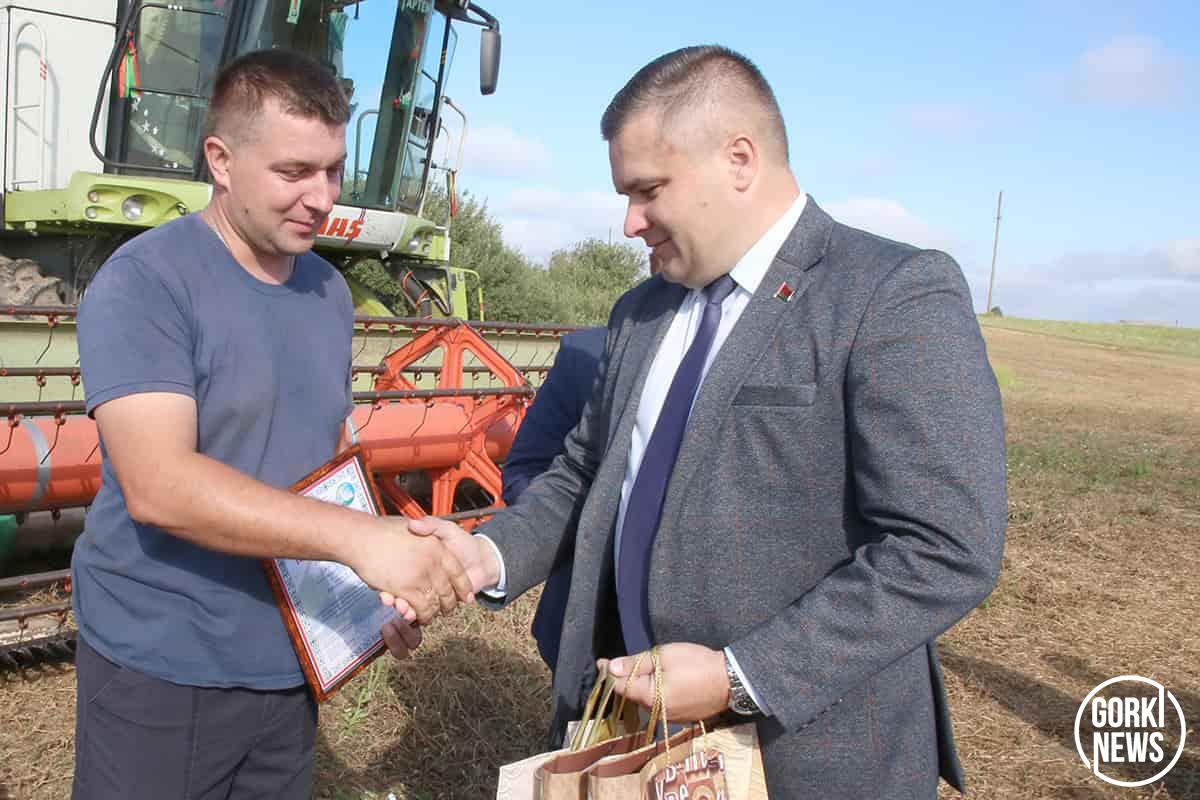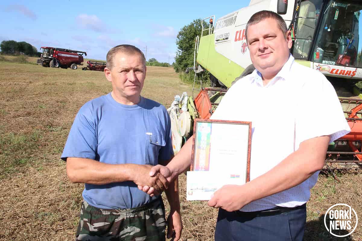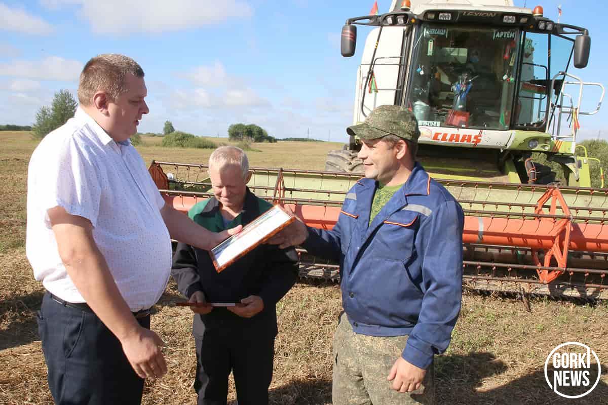 Инициатором ввести такую традицию в районе во время уборочной кампании стал председатель райисполкома Михаил Гулый. В минувшую пятницу свежескошенное поле стало площадкой для поздравления лучших хлеборобов в РУП «Учхоз БГСХА».  Председатель райисполкома Михаил Гулый вручил Благодарности райисполкома «серебряным» призерам жатвы. Их получили водитель Артемий Костюков и комбайнер Владимир Ходосевич, которые вторыми в районе стали тысячниками среди водителей на перевозке зерна от комбайнов и комбайнеров.