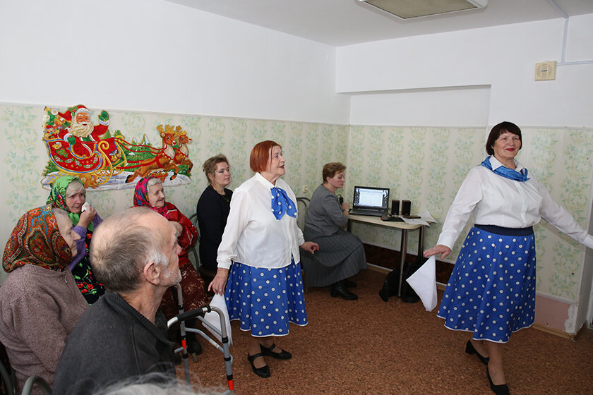 Выразила благодарность гостям за заботу и внимание 88-летняя Нина Ивановна Терехова, которая вырастила четверых детей. Она родом из д. Зимник. Была рада поговорить с Александром Кривенковым, который в свое время возглавлял колхоз «40 лет Октября», где женщина работала. Вспомнили трудовые будни и достижения. «Сегодня нас очень хорошо поздравили. Замечательный концерт устроили. Столько сладких и полезных подарков подарили. Нам здесь хорошо живется: вкусно кормят, о нас заботятся. Говорю открыто: мы детей вырастили, квартиры им построили. А они не хотят своих стариков смотреть. Матери в таком возрасте некуда деться. Здесь живу. Хотя в свое время, когда выходила замуж, 17 лет прожили вместе со свекром. Обидно, конечно, но мы не унываем. Очень приятно, что руководство района, общественных организаций и молодежь нас не забывают и создают все условия для спокойной жизни», — сказала Нина Ивановна.