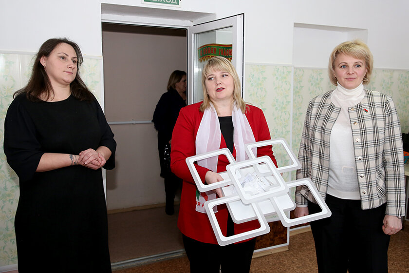 Заместитель председателя райисполкома Лариса Кривицкая тепло поздравила людей старшего возраста с новогодними и рождественскими праздниками, пожелала всем крепкого здоровья, хорошего настроения, счастья и радости. От районной организации РОО «Белая Русь» Лариса Владимировна подарила отделению дневного пребывания новую современную оригинальную люстру для комнаты отдыха: «Чтобы вам было комфортно смотреть телевизор, по вечерам было всегда светло и уютно, как днем».