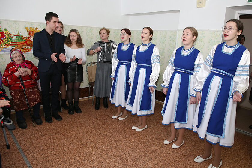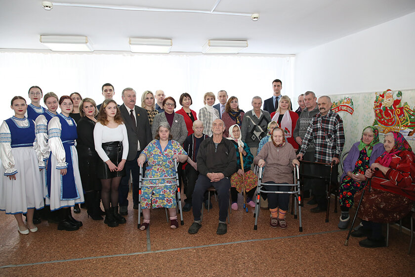 Сегодня представители власти, общественных организаций и молодежь поздравили 37 постояльцев отделения круглосуточного пребывания в агрогородке Ленино.