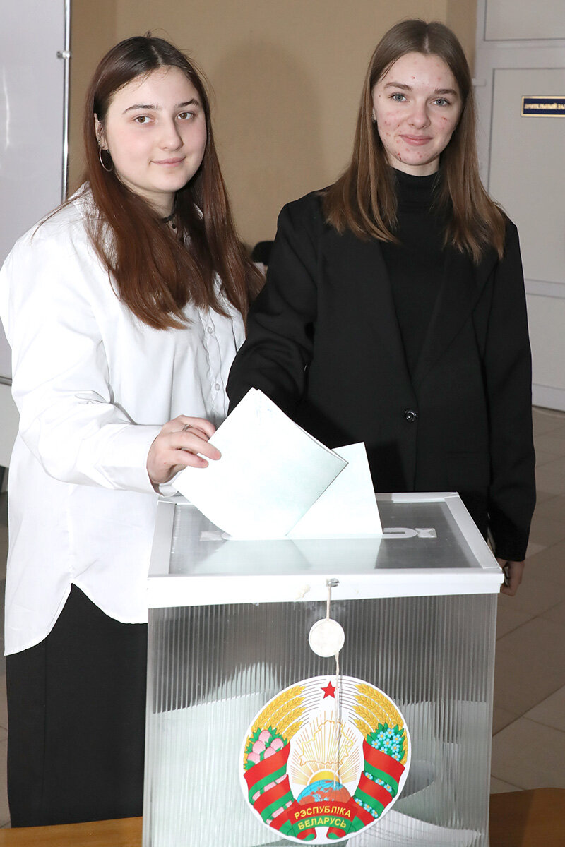 И сегодня молодежь также пришла на участок. Председатель участковой комиссии вручила учащимся Горецкого педколледжа подарки от Центральной избирательной комиссии при поддержке Министерства информации Беларуси – книги «Символы суверенной Беларуси».