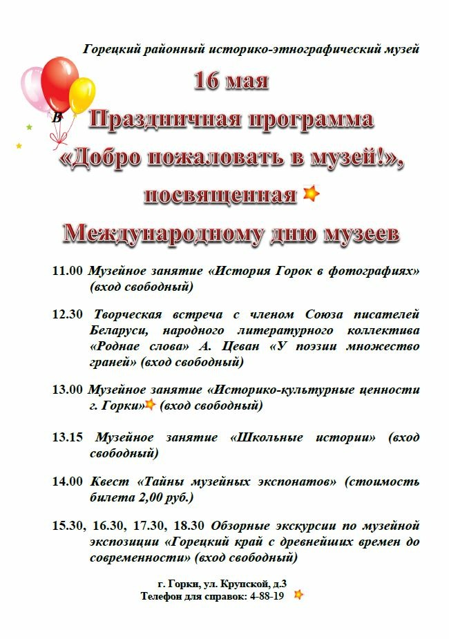 Горецкий музей приглашает на праздничную программу «Добро пожаловать в музей», посвященную Международному дню музеев