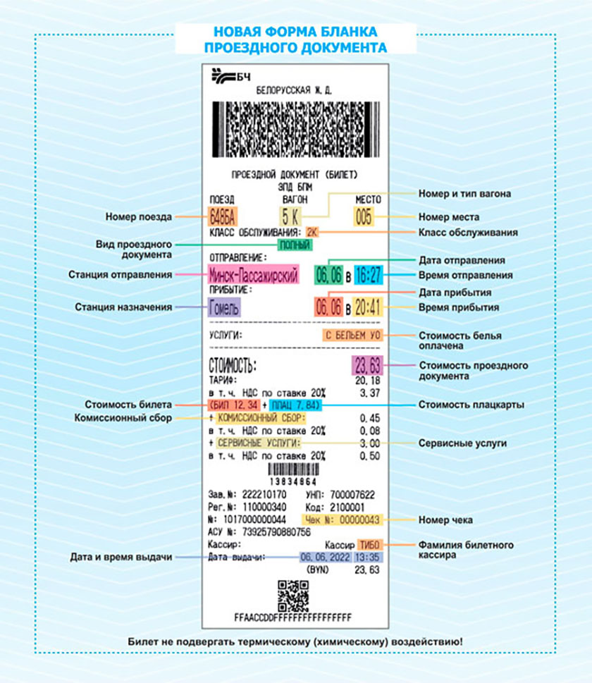 Как сообщалось ранее, с октября 2022 года Белорусская железная дорога постепенно переходит на новую технологию оформления проездных документов с использованием билетопечатающих машин. В связи с этим меняется и форма проездных документов.