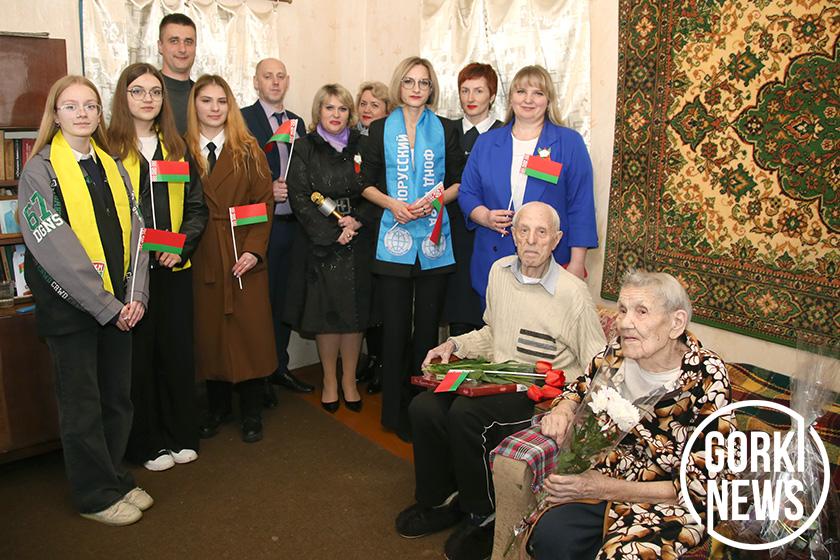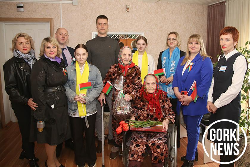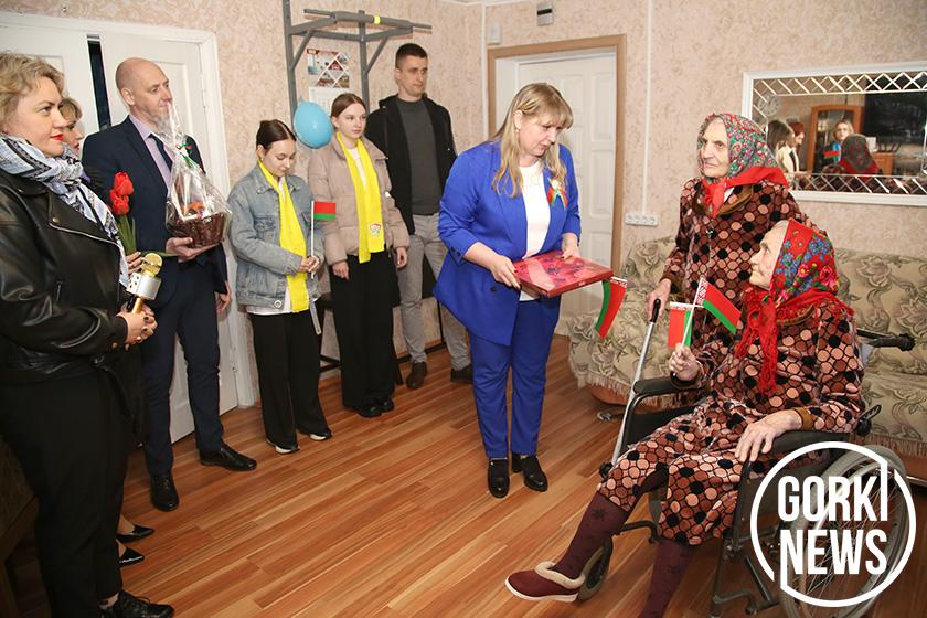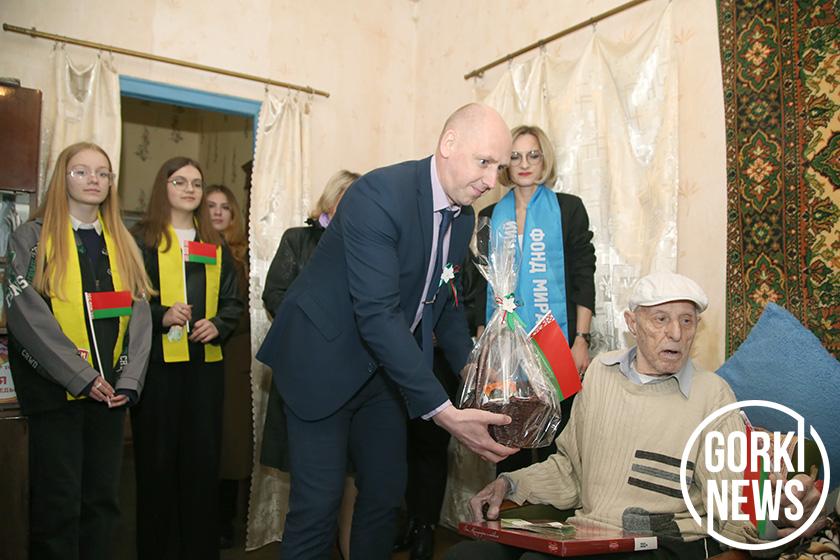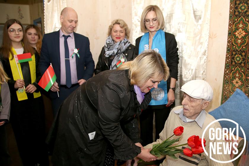 С предстоящим праздником уважаемого ветерана поздравили начальник управления по труду, занятости и социальной защите райисполкома Наталья Недосеко, директор Горецкого РЦСОН Денис Воскресенский, первый секретарь РК ОО «БРСМ» Сергей Сивуха, председатель районной организации ОО «Белорусский фонд мира» Ольга Киммель.