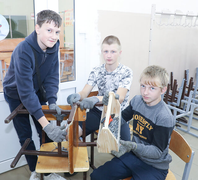 Летняя трудовая занятость на базе школ продолжается. В ближайшие недели учащиеся будут участвовать в таких работах, как озеленение школьных территорий, текущий ремонт, а также продолжат ремонтировать мебель и учебники.