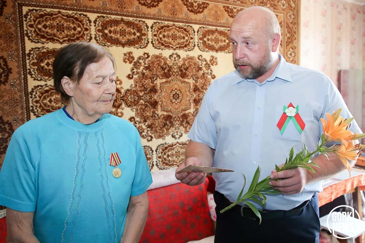 С особым трепетом пожилые люди принимали из рук гостей поздравление от Президента Беларуси Александра Лукашенко, в виде стилизованного листа-треугольника, и благодарили всех за внимание к поколению, судьба которого обожжена войной. И как один говорили, что нет в человеческой жизни ничего, дороже мирного неба над головой.