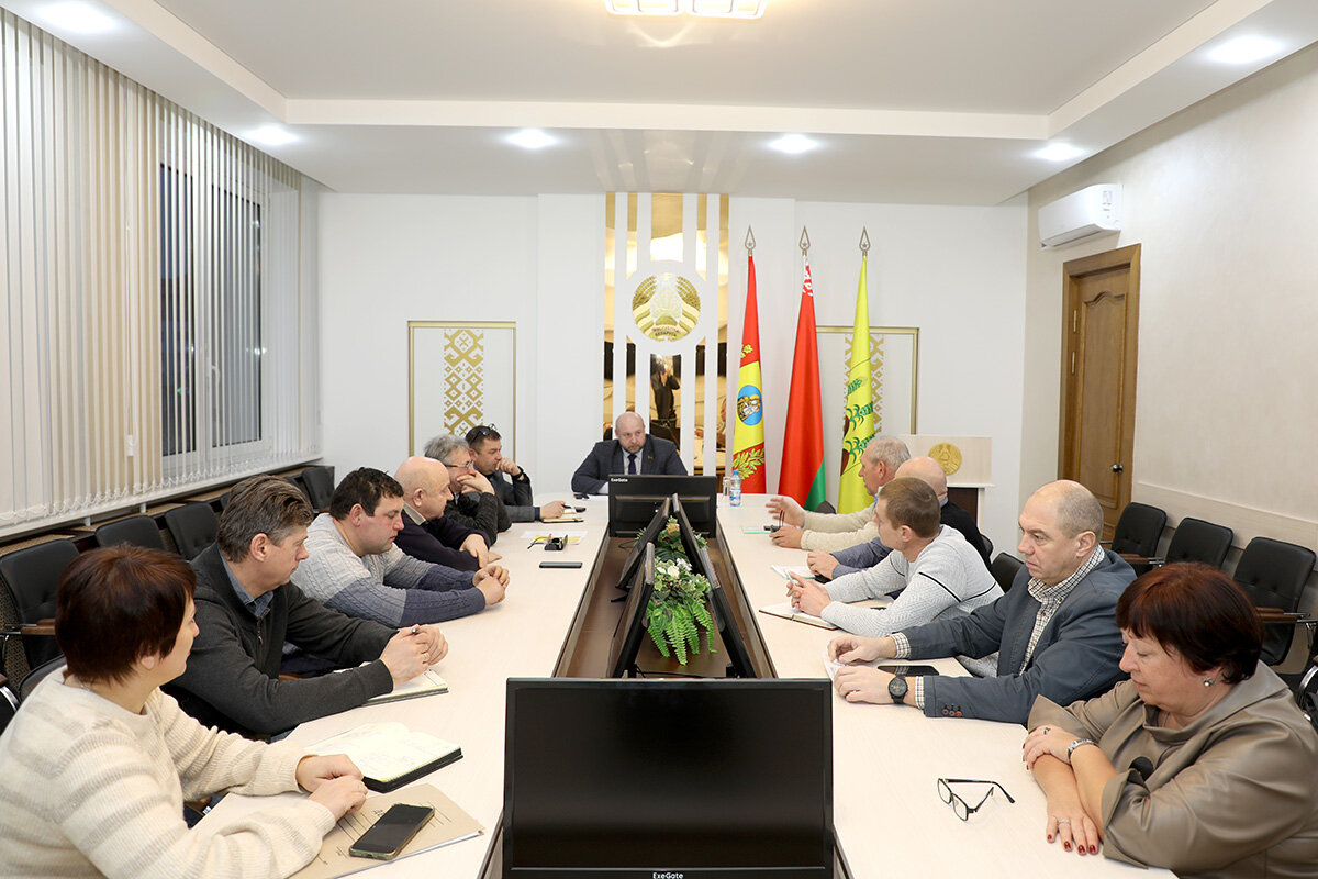 Под руководством председателя районного Совета депутатов Максима Потапенко проходит узкое совещание по благоустройству сельских населенных пунктов В диалоге участвуют председатели...