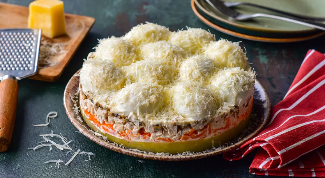 Посмотрите, какое это чудо — салат «Снежные сугробы» с курицей и грибами. Он восхитительно смотрится на праздничном столе и вызовет уважение к кулинарному...