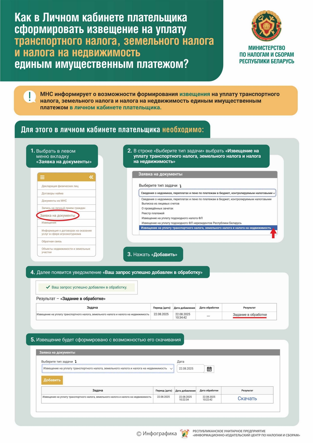 Как сформировать в Личном кабинете извещение на уплату транспортного налога, земельного налога налога на недвижимость единым имущественным платежом