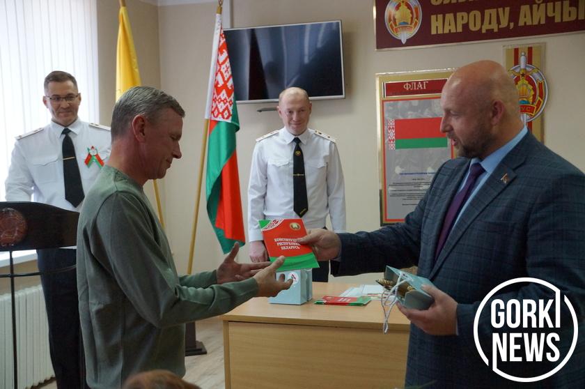 После торжественной клятвы они ставят подпись на  тексте присяги. Андрей Шугаев, поздравляя новых граждан страны, напомнил, что сегодня они получили не только все права, гарантированные Конституцией Республики Беларусь, но и обязанности. Максим Потапенко от районной организации РОО «Белая Русь» вручил им памятные подарки: Конституцию Республики Беларусь и сувениры.