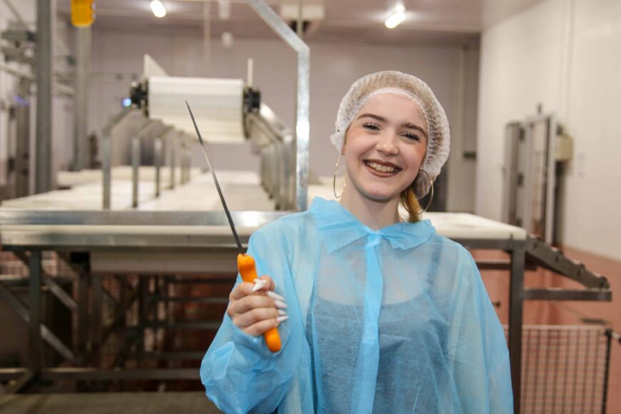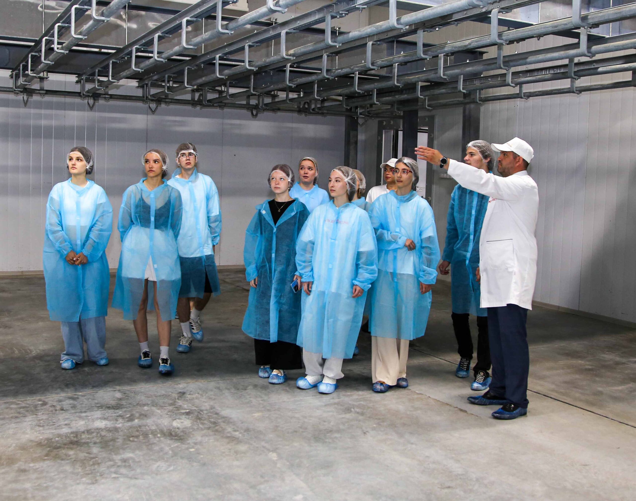 Пройдя внутрь административного здания, студентам выдали одноразовые халаты, шапочки и бахилы, после чего провели внутрь производственного здания. Именно там ребятам показали все участки работы: привоз и разделывание туш, заготовка фарша, варка, склад банок и готовой продукции. Вся экскурсия сопровождалась подробным рассказом о работе предприятия. Студенты в свою очередь внимательно слушали директора, главного ветеринарного врача и главного технолога.