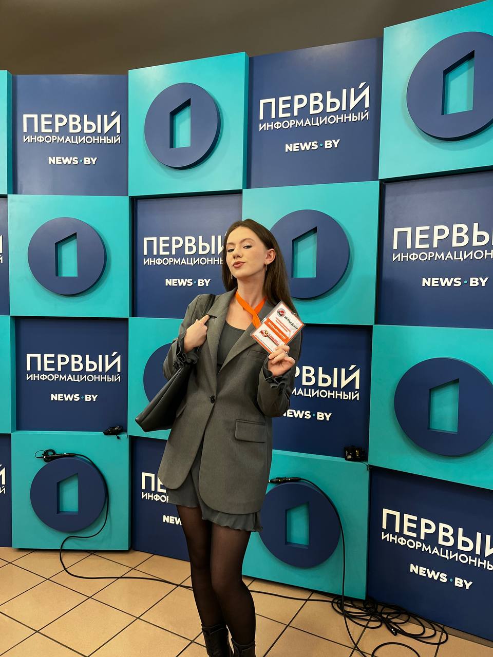 Каждый новый день не похож на прошлый. С первых дней в университете я активно включилась в творческую жизнь факультета. Стала участницей множества мероприятий, встреч, конференций. Дважды довелось поучаствовать в молодёжной телепередаче «#ПИН_КОД» на канале «Беларусь-2» Белтелерадиокомпании. Съемки, камеры, телестудия – все это так волнительно, но в то же время вдохновляющее. Мне кажется, я бы хотела и дальше развиваться в направлении аудиовизуальной журналистики.