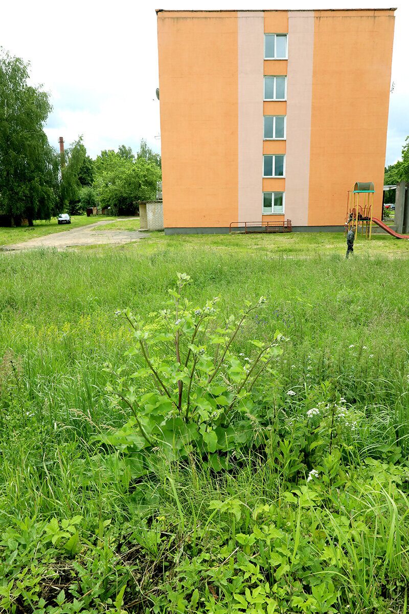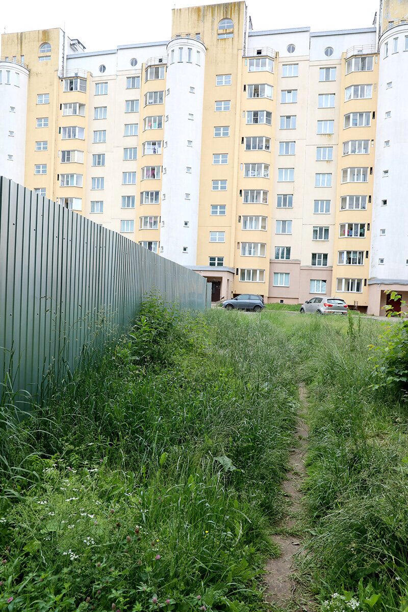 Трава по пояс возле общежития м-на Железнодорожный. Ответственный УКПП «Коммунальник».