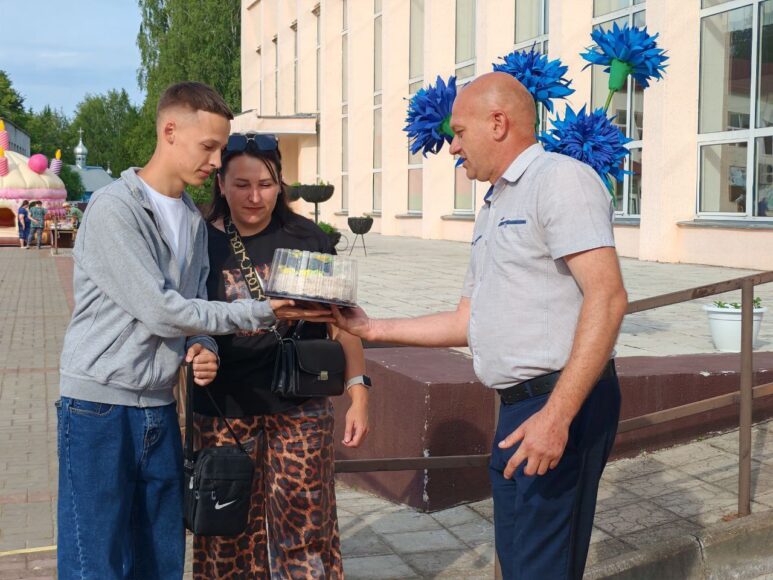 Глава сельисполкома Валерий Грищенков также вручил подарок имениннице Анне Гудына, которая в день проведения такого праздника отмечала свое 18-летие.