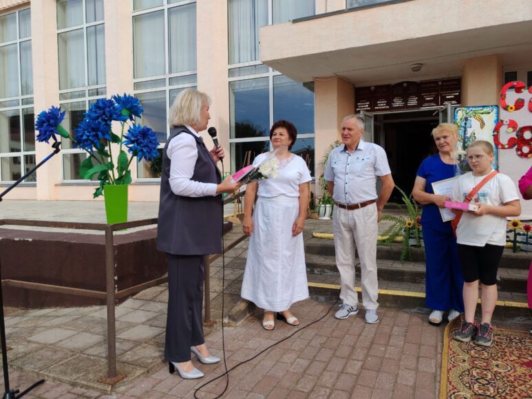 Ярким, торжественным и романтичным моментом праздника стало чествование семейных пар, которые в этом году отмечают хрустальную, жемчужную, коралловую, рубиновую и сапфировую свадьбы. Их семейный опыт будет полезен молодым парам. Под свадебный марш Мендельсона начальник отдела ЗАГС райисполкома Наталья Мелехова вместе с ведущей Татьяной Демиденко пригласили на сцену тех, кто отметил замечательные юбилеи совместной жизни. 15 лет живут в браке Сергей и Мария Шимбаровы, 30 лет – Григорий и Нина Колосовские, 35 лет – Виктор и Татьяна Чуркины, также 35 лет – Александр и Татьяна Власовы, 40 лет – Виктор и Татьяна Клименковы, 45 лет совместной жизни – Александр и Ирина Брезгуновы, и 45 лет вместе Михаил и Эмма Крышталевы.