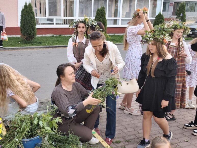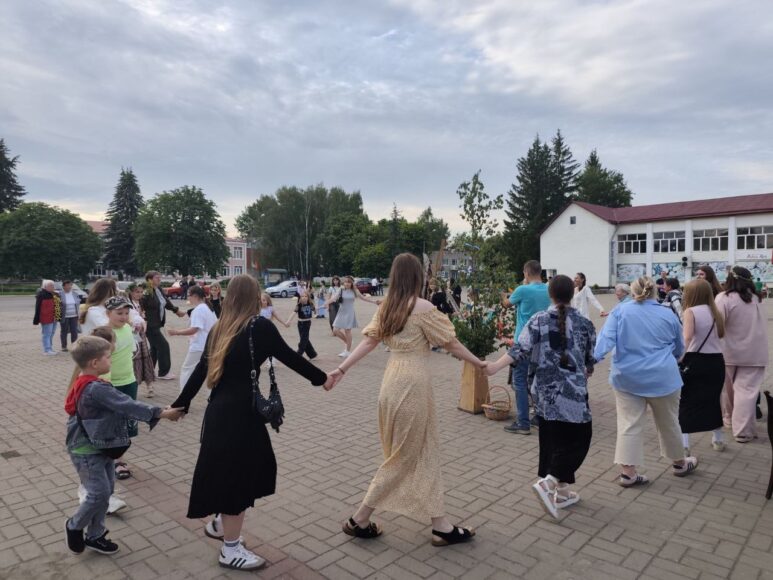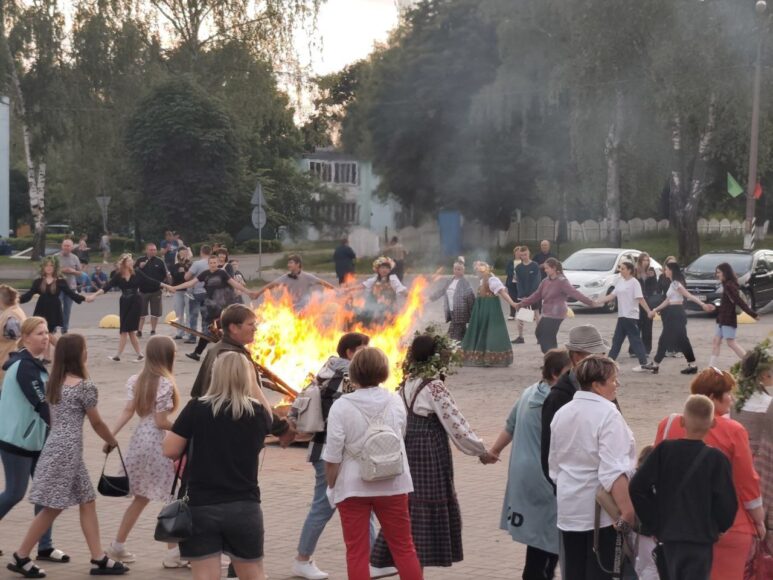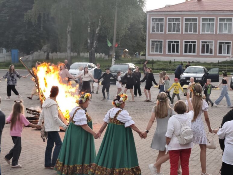 День деревни, который так красиво и радушно отметили в Ленино, сменил атмосферный народный праздник «Купалья», наполненный нотами волшебства, таинственности и веры в чудо. На площади были все атрибуты этого необычайно красивого обрядового праздника: купальские венки и костер, танцы, хороводы, игры, поиску заветной «Папараць–кветкі», которую, кстати, нашел внук коралловых юбиляров со дня свадьбы Виктора и Татьяны Чуркиных – Дмитрий, который приехал к бабушке с дедушкой на каникулы. А хорошее настроение всем участникам купальского вечера дарил вокальный ансамбль «Тараторки-нью» Коптевского сельского Центра культуры и досуга.
