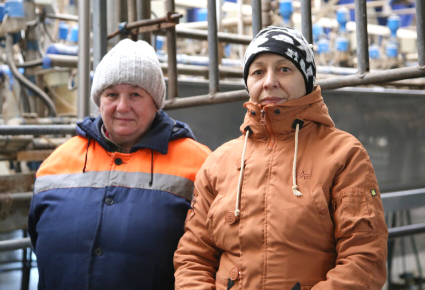 Коллектив операторов машинного доения на МТК сплоченный, любит животных и нацелен наращивать свои производственные результаты. Говорят, что 7200 кг на корову для них не предел: «Конечно, будем добавлять». У многих за плечами более 28 лет в животноводстве. Как, например, у Елены Степановой (на фото ниже слева): «Мне нравится моя работа: люблю животных. Начинала с телят. Самые приятные моменты, когда корова спокойно заходит в зал, все идет по технологии. Мы одна команда, подстраховываем друг друга, помогаем, поэтому и результат общий».