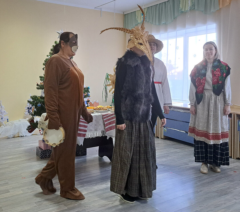 «Колядовщики» пришли к ребятам с веселыми песнями и колядками. Ряженые артисты разыграли настоящий спектакль. Они погостили у радушной хозяйки, поиграли с козой, пели песни, водили хороводы, разгадывали загадки, гадали. В конце мероприятия хозяева угощали гостей чаем и разными вкусностями. У всех участников остались хорошие эмоции о празднике.
