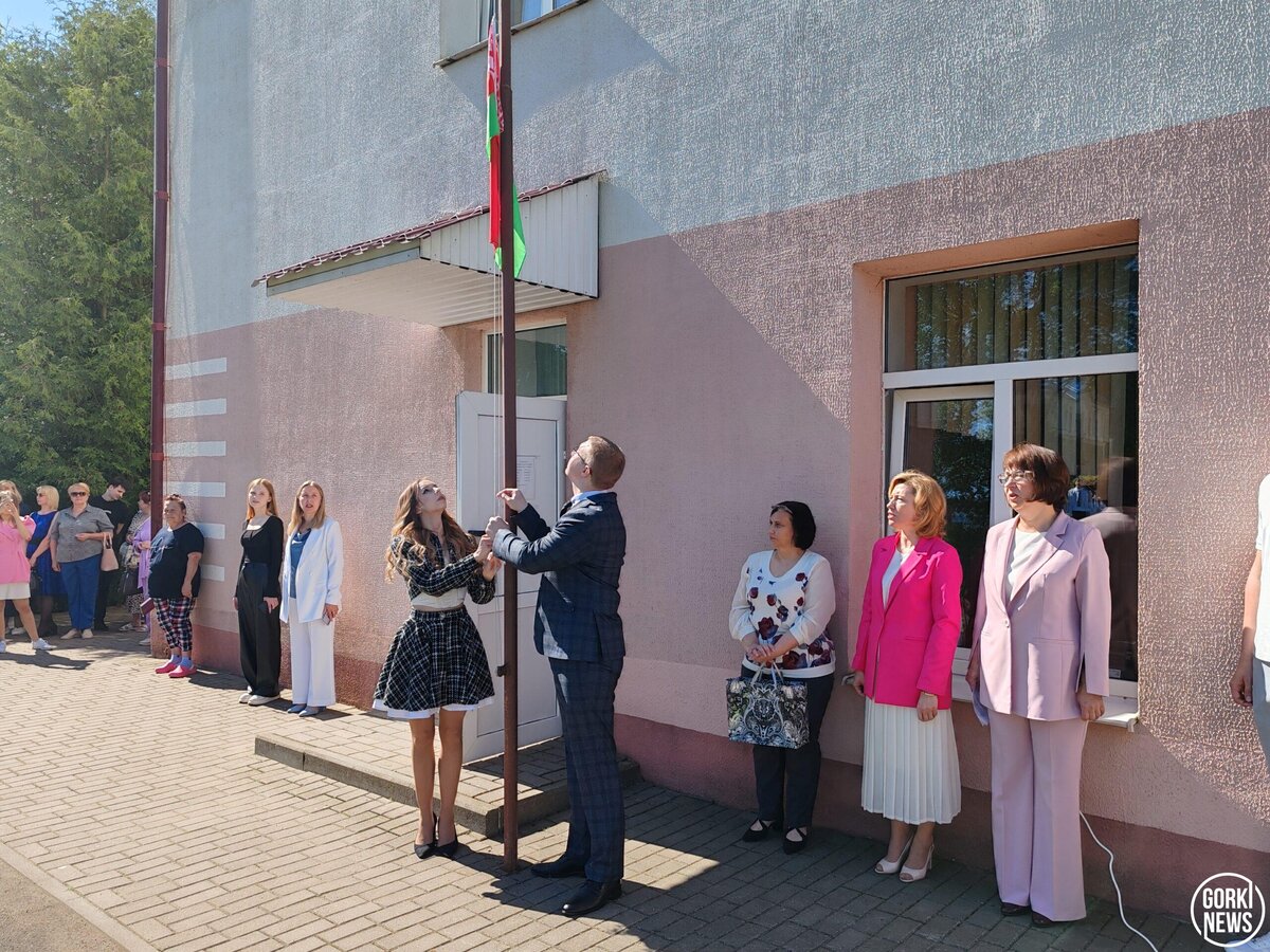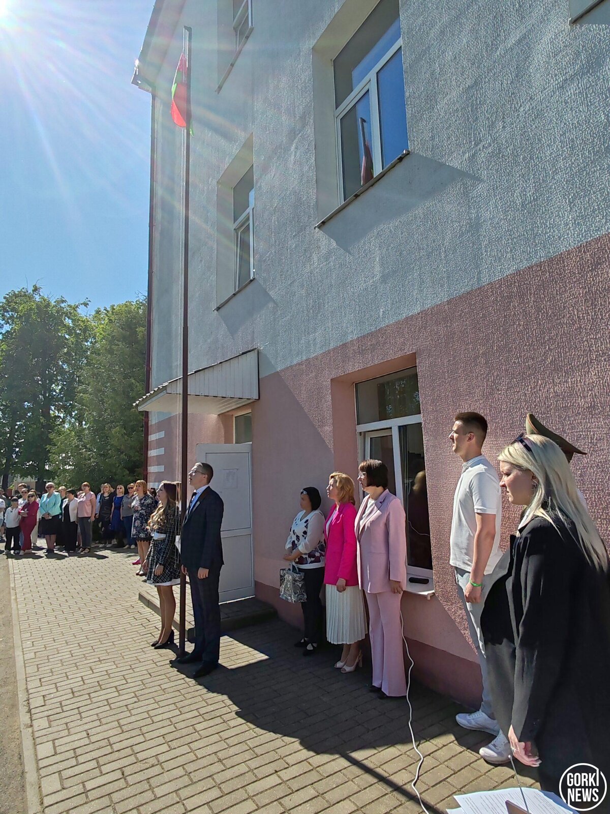 Открытие линейки сопровождалось поднятием государственного флага и исполнением гимна. Право поднять флаг Республики Беларусь было предоставлено выпускникам 11 «А» класса Дмитрию Беленко, призеру второго этапа республиканской олимпиады по обществоведению и Эвелине Белясовой, призеру второго этапа республиканской олимпиады по иностранному языку, победителю районного и участнику областного конкурса «Я патриот своей страны» в рамках белорусско-российского проекта «Поезд памяти».