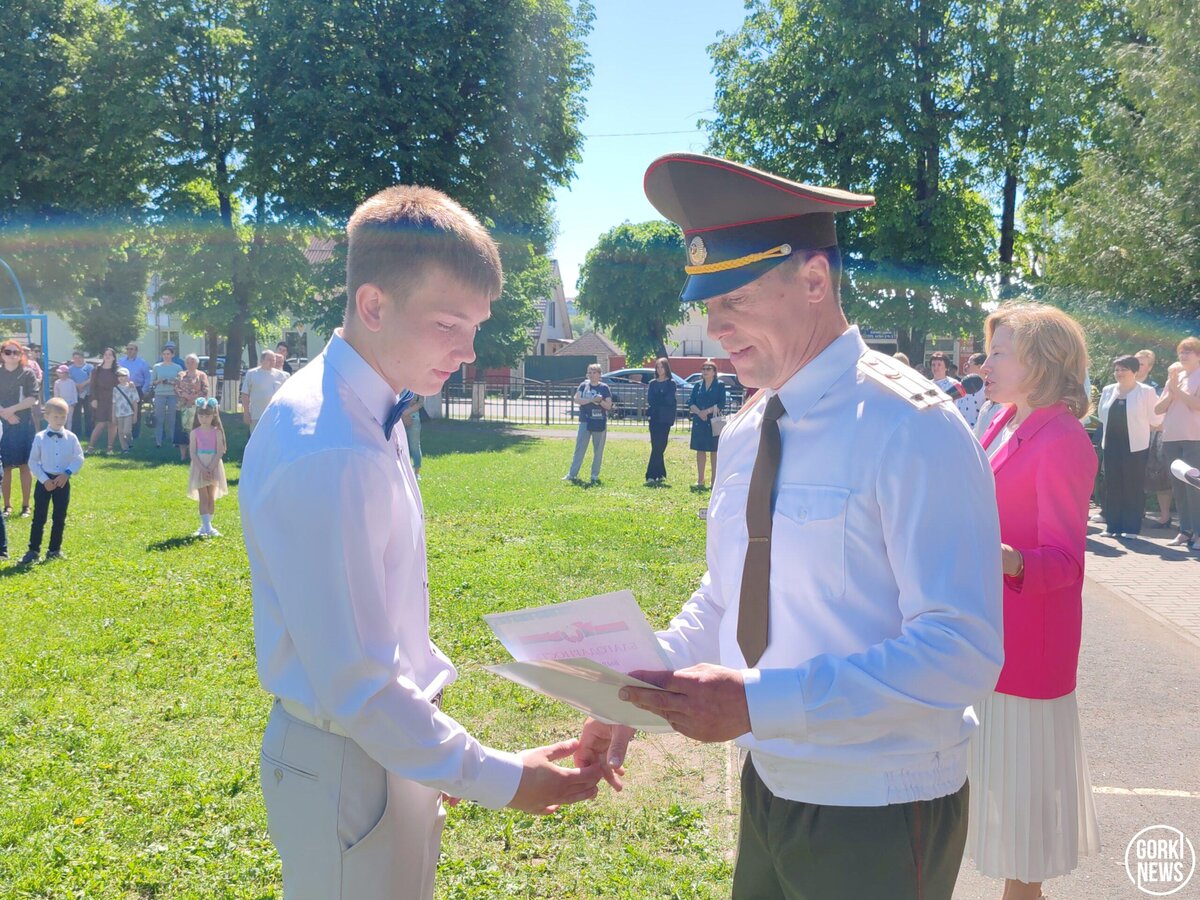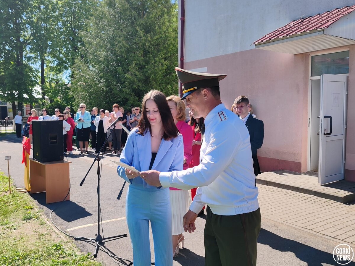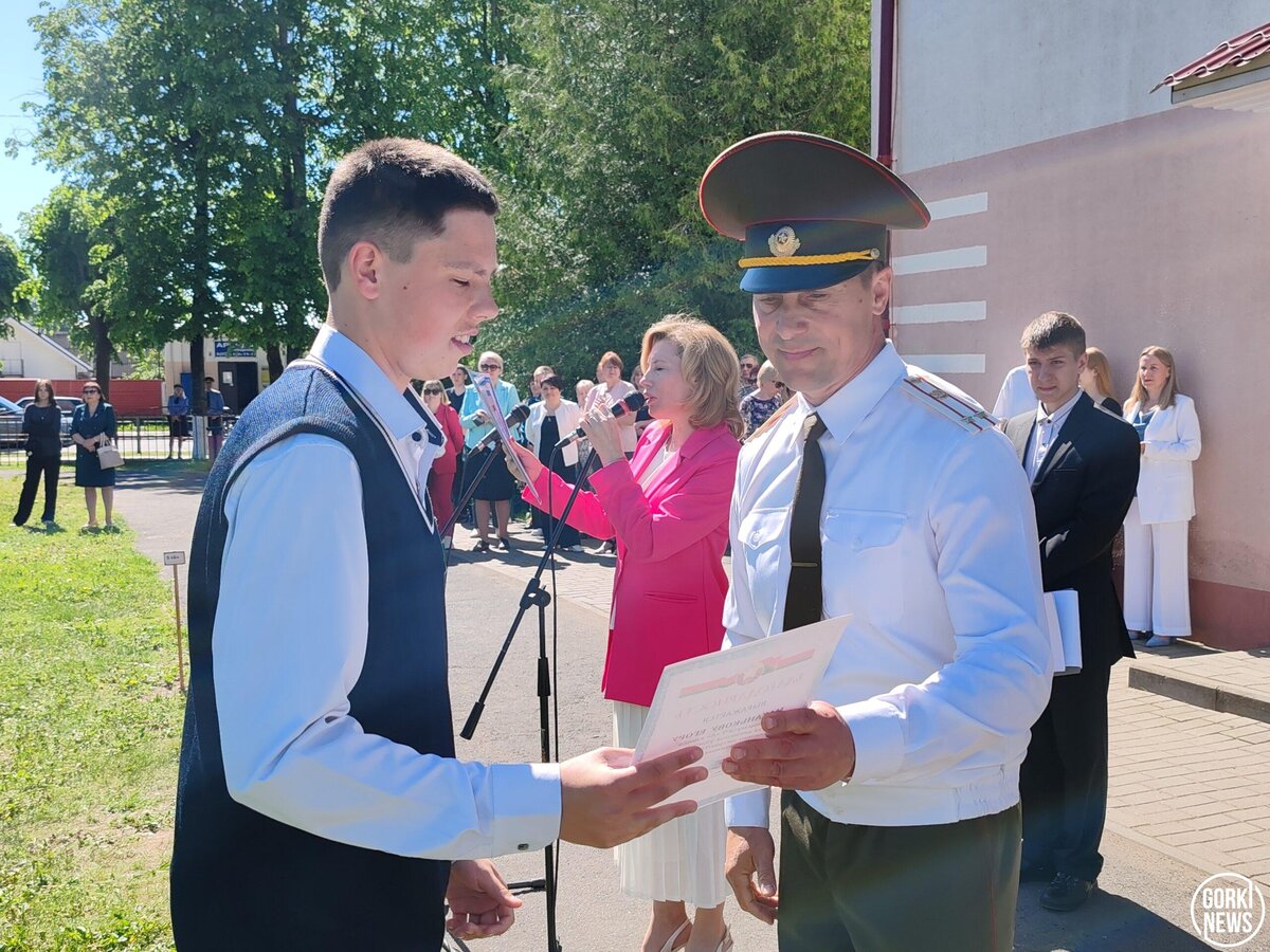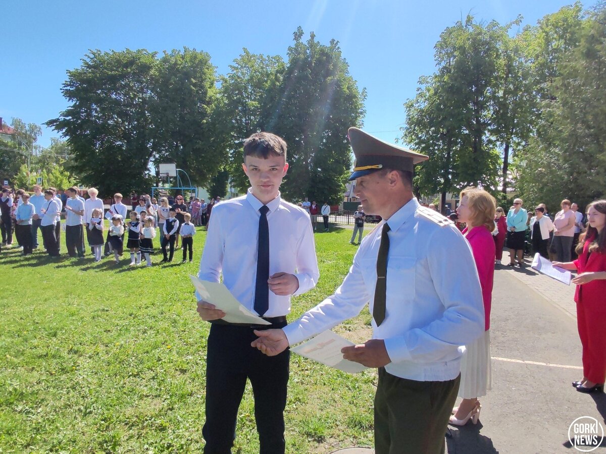 В качестве почетных гостей на школьном празднике присутствовали управляющий делами райисполкома Наталья Ковалева, первый секретарь РК ОО «БРСМ» Сергей Сивуха, ведущий экономист ОАО «Горкилен» Елена Довыденко. Каждый из выступающих нашел самые душевные и трогательные слова и пожелания для ребят. Руководитель военно-патриотического клуба «Доблесть» Игорь Винокуров вручил благодарственные письма курсантам-выпускникам.