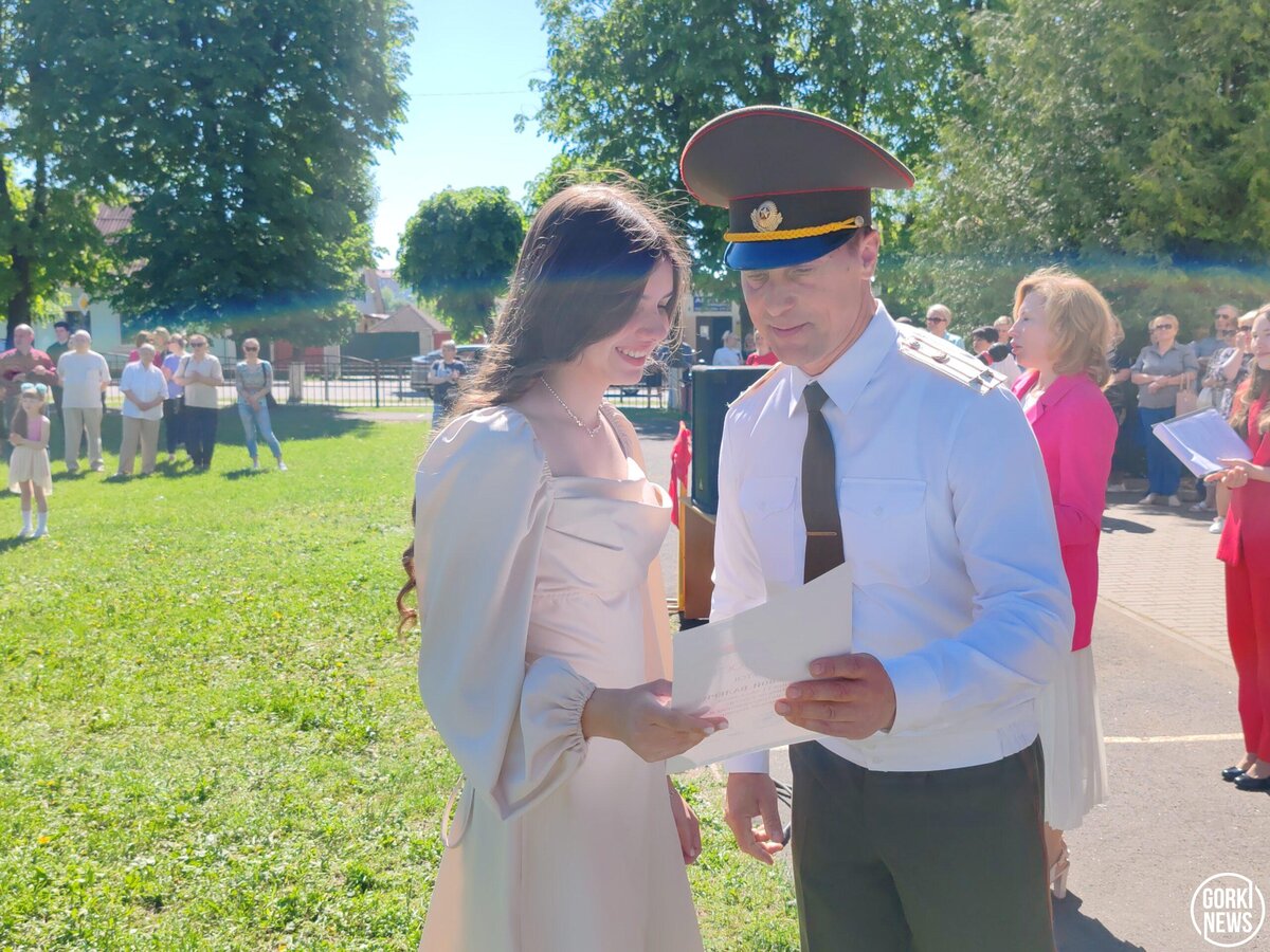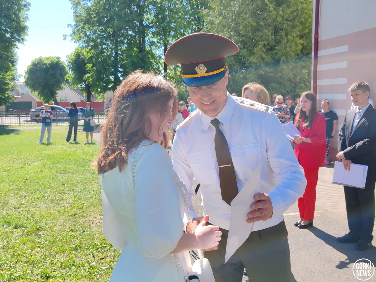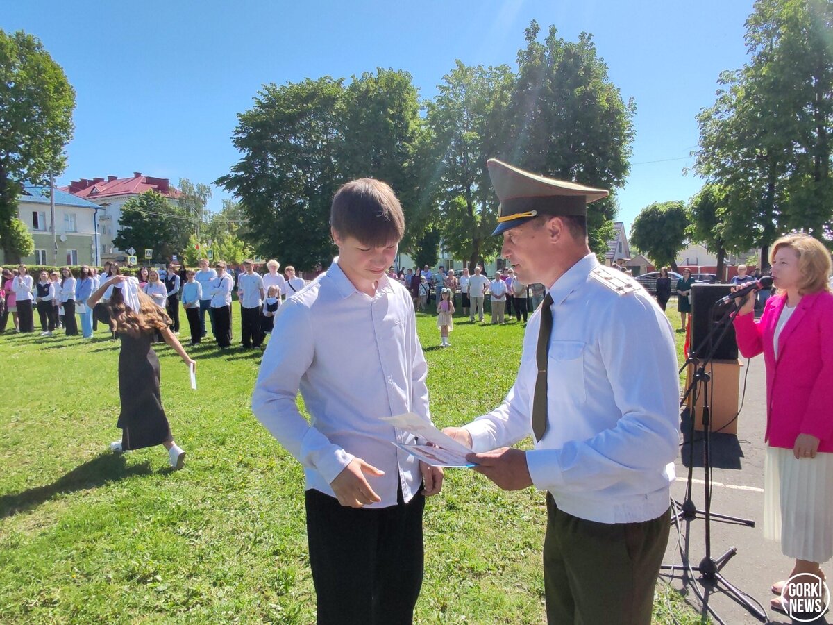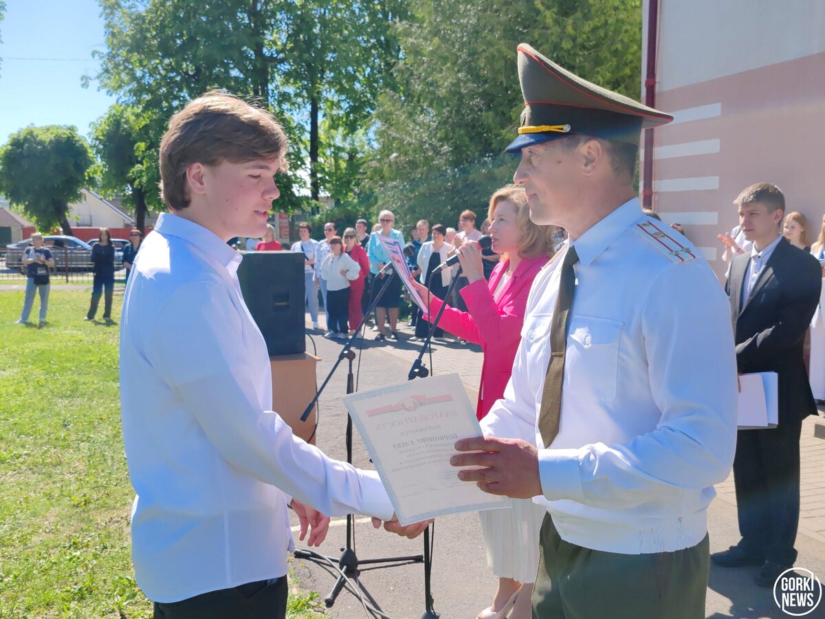 В качестве почетных гостей на школьном празднике присутствовали управляющий делами райисполкома Наталья Ковалева, первый секретарь РК ОО «БРСМ» Сергей Сивуха, ведущий экономист ОАО «Горкилен» Елена Довыденко. Каждый из выступающих нашел самые душевные и трогательные слова и пожелания для ребят. Руководитель военно-патриотического клуба «Доблесть» Игорь Винокуров вручил благодарственные письма курсантам-выпускникам.