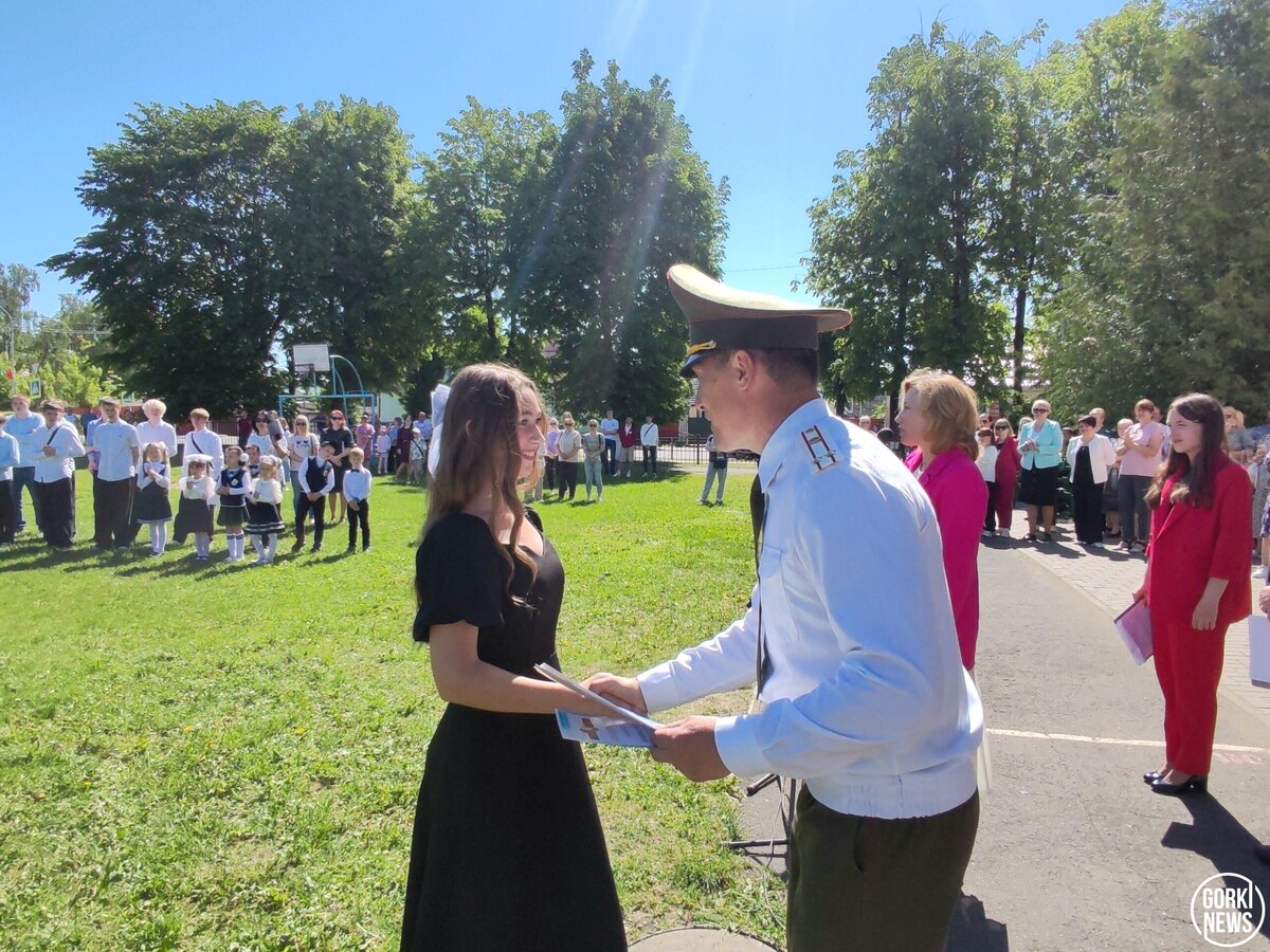 И вот настало время для самой волнующей минуты торжества ‒ последнего звонка. Эта почетная миссия была доверена выпускнику 11 «А» класса Михаилу Сидорову и учащейся 1 «А» класса Софии Степановой. Звук звенящего колокольчика отозвался приятными воспоминаниями о школе у всех гостей праздника.