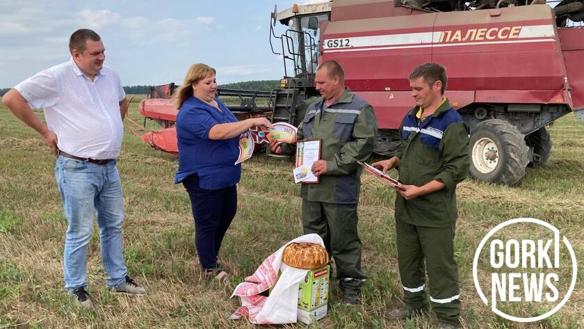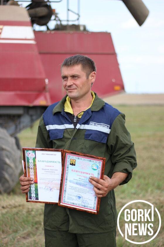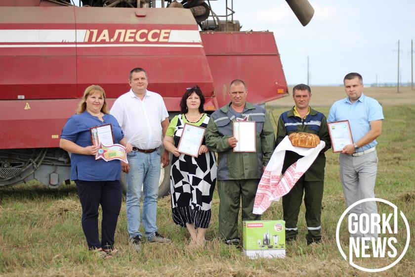 Прямо в поле поздравили героев с трудовой победой первый заместитель председателя райисполкома — начальник управления по сельскому хозяйству и продовольствию Андрей Саланинка, председатель РК профсоюза работников АПК Елена Чаплыгина, директор РУП «Учхоз БГСХА» Алексей Двойнишников, председатель профкома Екатерина Полякова.