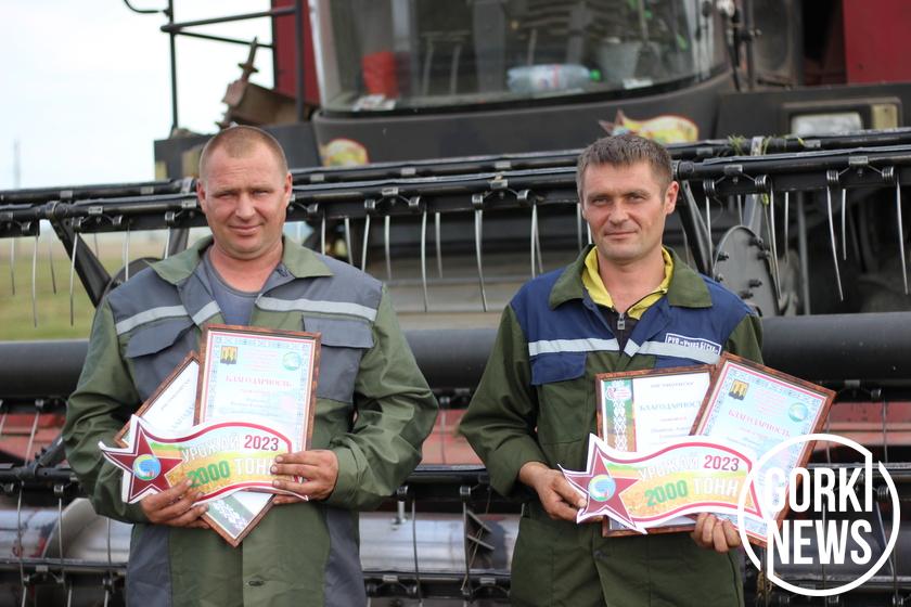 Поблагодарил экипаж комбайнеров за такой красивый и неожиданный финал жатвы директор учхоза Алексей Двойнишников. «Очень приятно, что экипаж комбайнеров, которые единственные в районе стали двухтысячниками, чествуем сегодня в нашем хозяйстве», — сказал Алексей Викторович и вручил Благодарность и денежные премии. Он рассказал, что Александру Якушеву, который работает на «Лексионе» до покорения 2-тысячного рубежа не хватило всего 90 т.