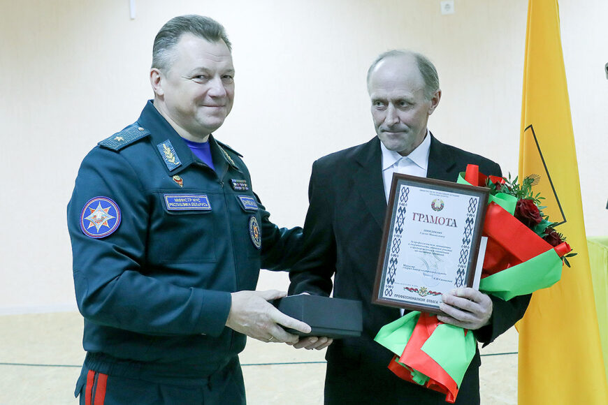 – Вы знаете, на протяжении долгих лет службы мы, белорусские спасатели, люди в погонах, сталкиваемся с разными событиями, когда нашим коллегам приходится рисковать жизнью, принимать мгновенные решения, связанные с обеспечением безопасности людей. Но это делается осознанно, на основе той присяги, того высокого предназначения, которому посвящает себя человек в погонах. И сегодня тысячи спасенных жизней, десятки тысяч эвакуированных людей из различных чрезвычайных ситуаций – это подтверждение тому, что мы принимаем самые ответственные меры, связанные с подготовкой белорусских спасателей, с обеспечением их надежной техникой, современным оборудованием, экипировкой, средствами ликвидации чрезвычайных ситуаций. Но все это меркнет перед тем, как простой человек, который живет здесь, среди вас, увидев эту опасность, зная о том, что там находятся детки, бросился их спасать. И, слава Богу, у него это получилось. И не каждый может рискнуть, выполнить эту работу так же отважно, так же мужественно, как это сделал Сергей Михайлович, – сказал Вадим Синявский.