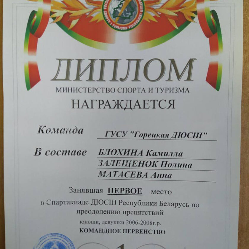 С 19 по 22 октября проходила Спартакиада РБ ДЮСШ по преодолению препятствий на базе Могилевского областного центра по конному спорту и современному пятиборью. Горецкую ДЮСШ (команда), представляли 3 спортивные пары Залещенок Полина на Эйсидоре, Блохина Камилла на Магелане, Матасева Анна на Эпилоге.