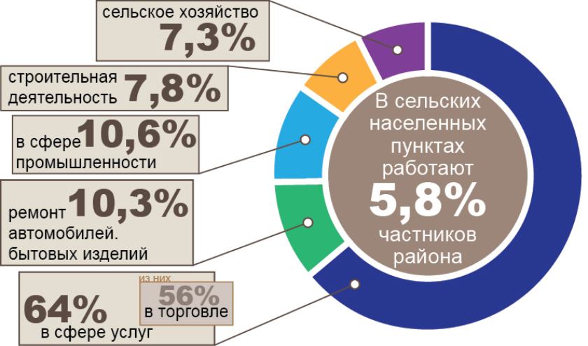 «В районе динамично развиваются предприятия малого и среднего предпринимательства, которые формируют 53,5% доходной части бюджета. А это 7,9 млн рублей. По состоянию на 1 июня 2023 года осуществляют деятельность 206 коммерческих организаций и 670 индивидуальных предпринимателей. За 5 месяцев нынешнего года зарегистрировано 7 вновь созданных коммерческих организаций и 13 ИП».