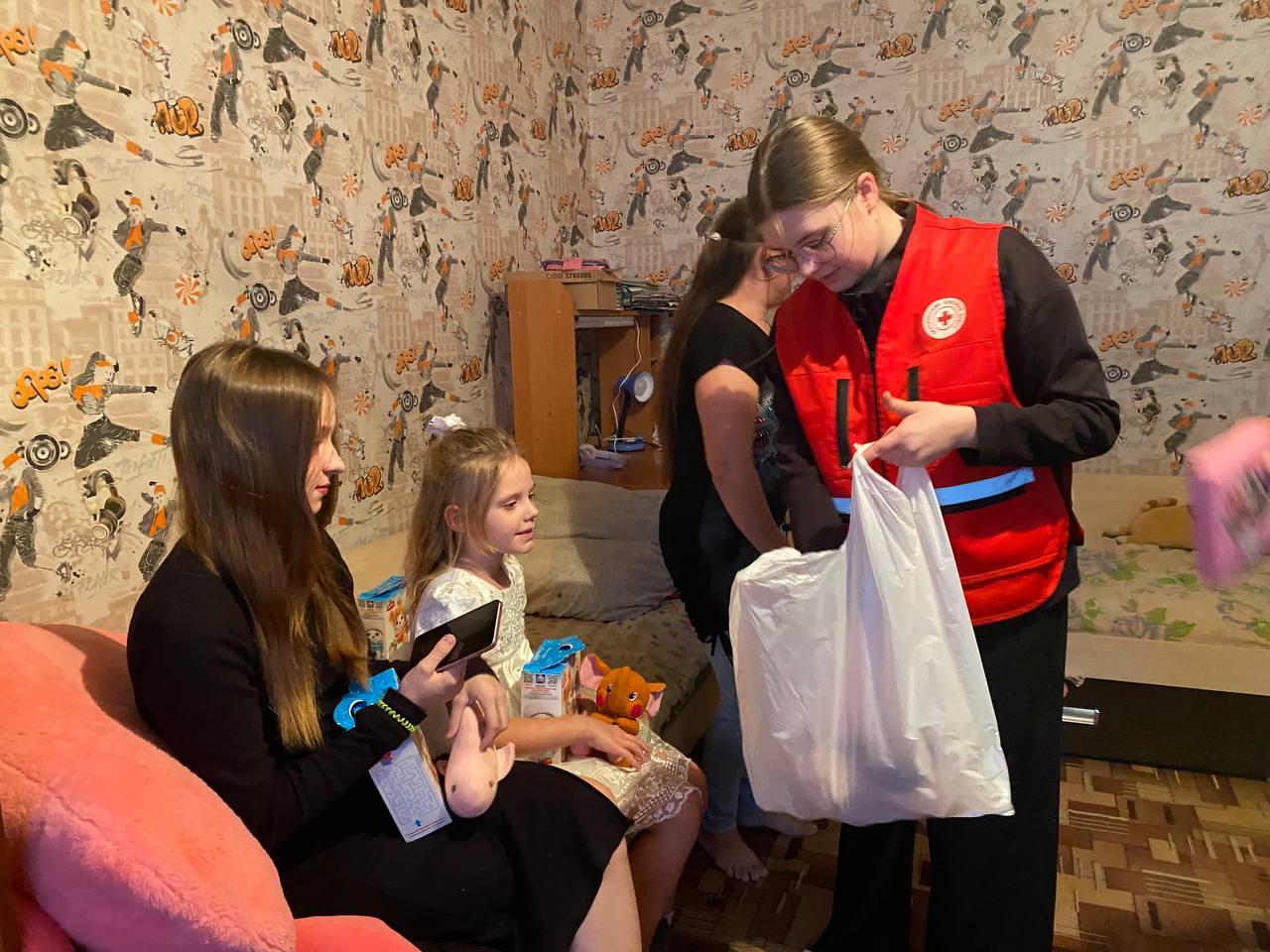 Председатель Горецкой РО Белорусского Красного Креста Татьяна Боровикова и волонтер УО «Гимназия № 1 г. Горки» Ксения Воскресенская посетили семьи Степкиных и Титовых и вручили им сладкие подарки, игрушки и волонтерскую помощь.