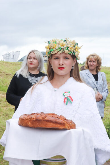 От имени руководства района молодых людей приветствовала заместитель председателя райисполкома Лариса Кривицкая. Во время встречи в Ленино дорогим гостям по традиции вручили душистый каравай на льняном рушнике.