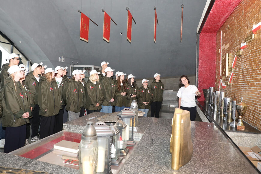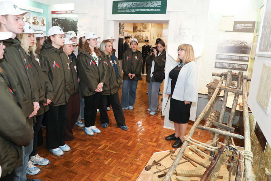 Затем молодежь направилась к мемориальному комплексу, где заведующий музеем Татьяна Рынкевич провела для ребят увлекательную экскурсию по уникальному на постсоветском пространстве музею советско-польского боевого содружества. Гостям было интересно послушать рассказ специалиста и рассмотреть уникальные экспонаты представленных экспозиций, диораму боя.