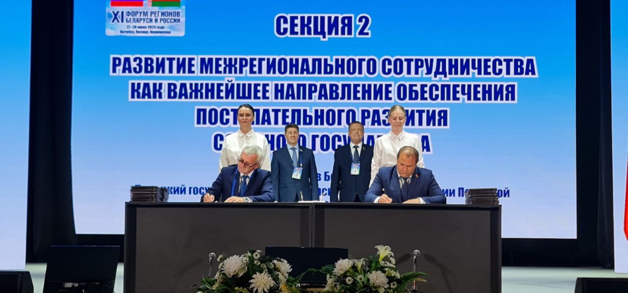 Важный документ был подписан в рамках XI Форума регионов Беларуси и России, который проходит с сегодняшнего дня в Витебской области под девизом «Роль межрегионального сотрудничества в построении инновационной экономики Союзного государства».