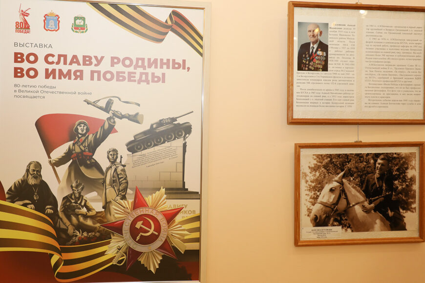 В выставочном зале Горецкого районного историко-этнографического музея торжественно открыли выставку «Во славу Родины, во имя Победы», посвященную 80-летию Великой Победы. Эту уникальную выставку нашему району подарила к 80-летию Великой Победы администрация города-побратима Мичуринска Тамбовской области Российской Федерации.