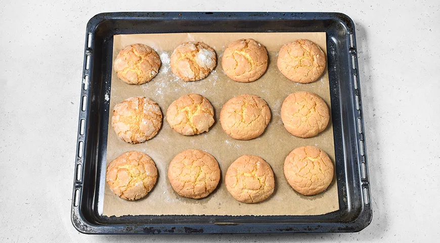 Выпекайте печенье с апельсином в духовке при температуре 180 ºC. Непременно ставьте в уже разогретый прибор! Это важно. Иначе не получится той самой куполообразной формы. Готовые апельсиновые печеньки «Трещинки» Выньте, остудите и подавайте.