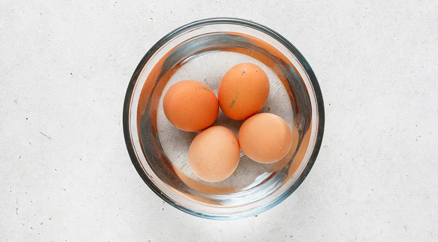 Подготовьте все ингредиенты. Проверьте свежесть яиц. Для этого есть очень простой способ. Налейте в стакан холодную воду. Опустите в него яйцо. Если сразу пошло на дно, то оно свежее. Если всплывает, выбросьте его: есть такое нельзя.