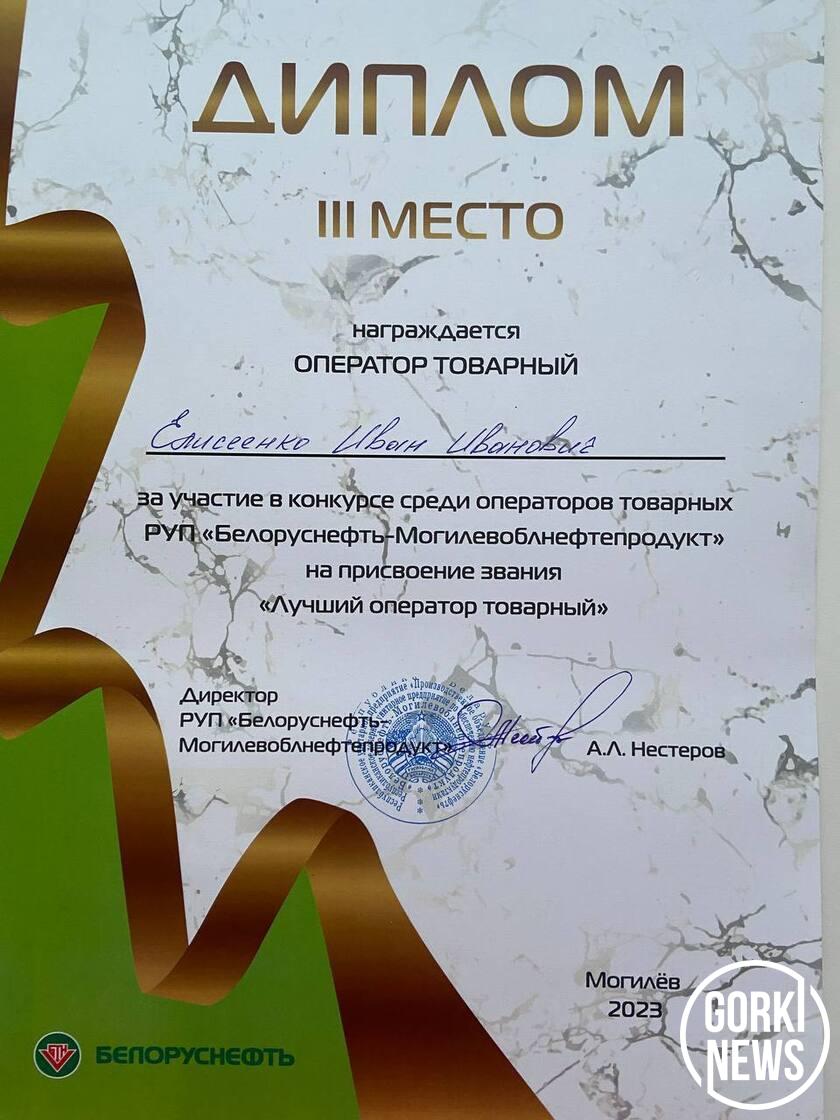 Товарный оператор РУП «Белоруснефть-Могилевоблнефтепродукт» Иван Елисеенко занял третье место в 27-м конкурсе профессионального мастерства. При этом в Могилевской области среди данной категории работников он проводился впервые. В интервью «Горецкому вестнику» наш герой рассказал, что для него значит победа и какие качества важны в профессии