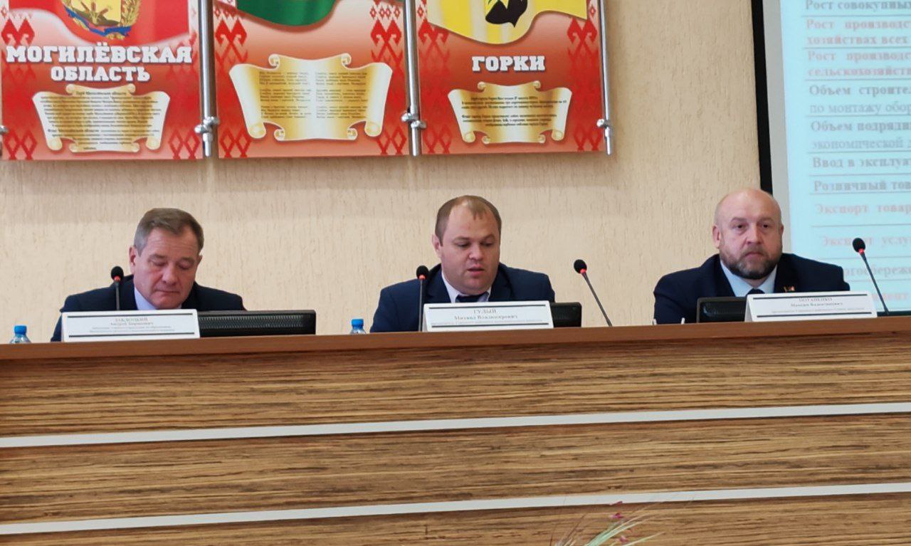 Итоги социально-экономического развития и исполнения бюджета района за первый квартал. Выполнение Государственной программы «Социальная защита» на 2021–2025 годы. Реализация концепции доверительного управления акциями ОАО «Молочные Горки», ОАО «Маслаки» и ОАО «Горецкое». Ход реализации плана действий на 2022–2025 годы по сохранению памятников архитектуры Могилевской области, включая вовлечение неиспользуемых объектов в хозяйственный оборот.