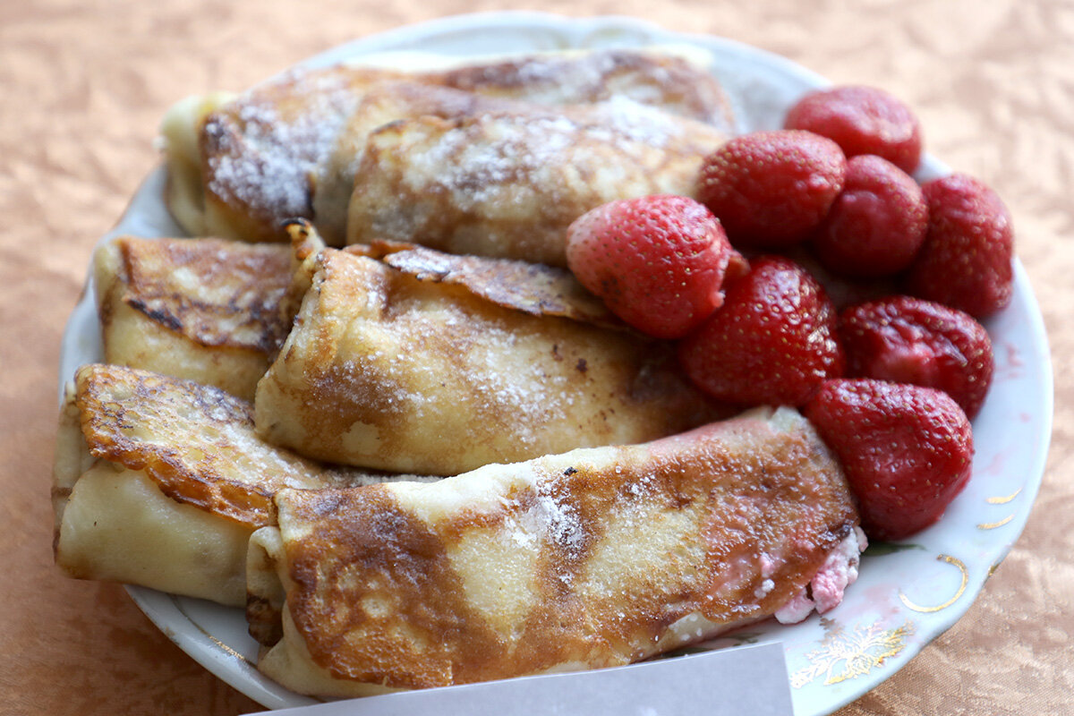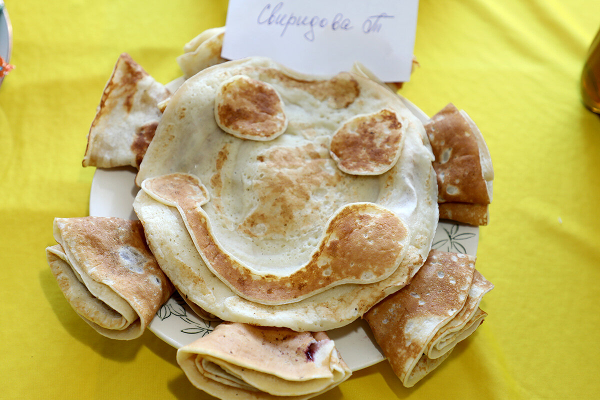 После концерта все присутствующие сели за стол, чтобы полакомиться свежими блинами, которые испекли члены Белорусского общества инвалидов.