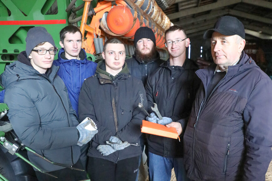 На мехдворе студенты второго курса мелиоративно-­строительного факультета получают мастер-класс по  постановке техники на зимнее хранение под руководством одного из лучших главных инженеров района Сергея Зайца и помогают это сделать качественно и оперативно.