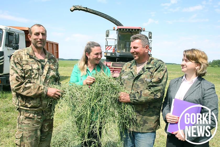 При организации эффективного зеленого конвейера ставку в хозяйстве сделали на материальное стимулирование высокой производительности труда. В трудовом соревновании в этом году появилось новшество. По словам главного экономиста Татьяны Шалаевой, если сенажная траншея будет заложена за 3 дня, как это требуется по технологии, мехотряд получит бонус в 500 рублей. Ежедневно сдаются путевые листы, подводят итоги, определяют коэффициент трудового участия в начислении заработной платы и ведут экран соревнования, чтобы механизаторы могли видеть, сколько они зарабатывают и где их резервы для увеличения зарплаты. Если они выполняют более одной нормы (полторы-две и более), ее размер увеличивается в 2-2,5 раза. Механизаторы имеют возможность получить более 200 рублей в день. Как, например, передовик Михаил Купалов, который стал автором настоящего трудового рекорда, освоив три нормы и заработав 220 рублей. Он скосил многолетние травы на 140 га. Неслучайно его кабину украшают наклейки в виде звезд. «Это наш лидер, устанавливающий высокую планку в работе, на результаты которого равняются другие. В поле он с раннего утра до позднего вечера. Его техника всегда тщательно отремонтирована и отрегулирована. Это ответственный человек, который всегда и во всем руководствуется принципом «Необходимо? Значит, сделаю!» — так характеризует лучшего работника Виктория Недбайло, обратив наше внимание на то, как ровно он производит скашивание травостоя.