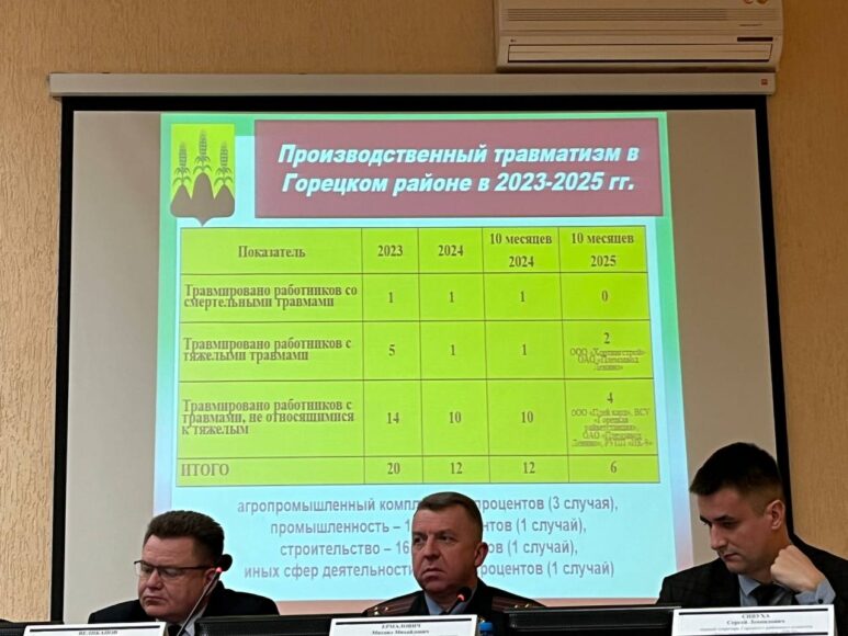 По данному вопросу выступила заместитель председателя райисполкома Лариса Кривицкая. Лариса Владимировна акцентировала внимание на производственном травматизме в районе в 2023-2025 годах, реализации проекта «Горки — здоровый город», пропаганде здорового образа жизни, диспансеризации населения, мониторингах мобильными группами организаций, предприятий, учреждений, а также на тематических месячниках и проведенных профилактических мероприятиях.