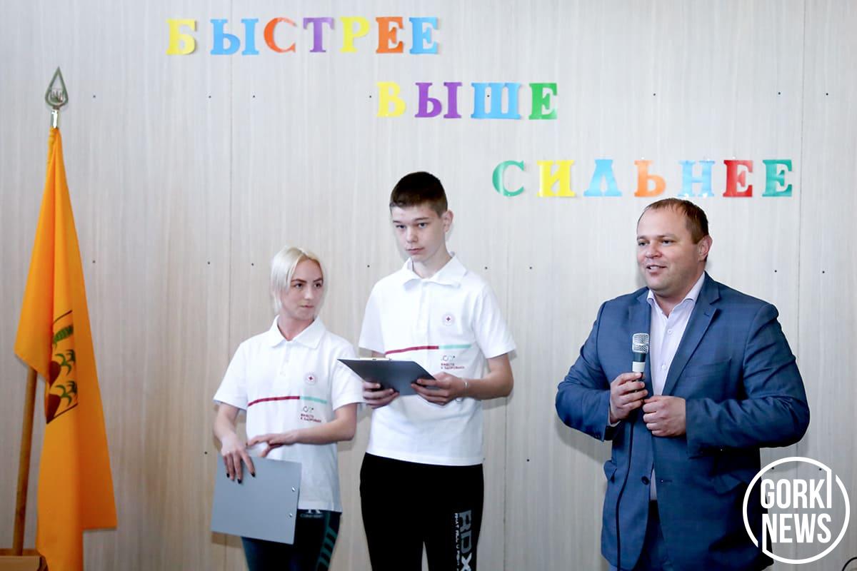 Председатель районного Совета депутатов Максим Потапенко вручил руководству школы спортивный подарок для учащихся. Директор Елена Манаева поблагодарила Максима Валентиновича и пожелала интересной игры и яркой победы участникам соревнования.
