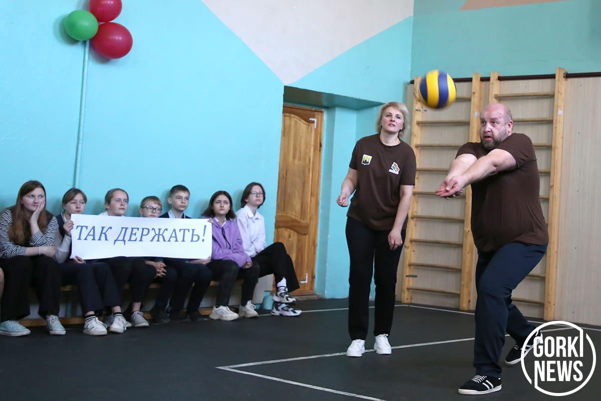 Председатель районного Совета депутатов Максим Потапенко вручил руководству школы спортивный подарок для учащихся. Директор Елена Манаева поблагодарила Максима Валентиновича и пожелала интересной игры и яркой победы участникам соревнования.