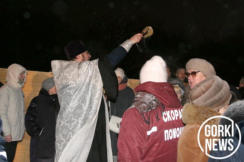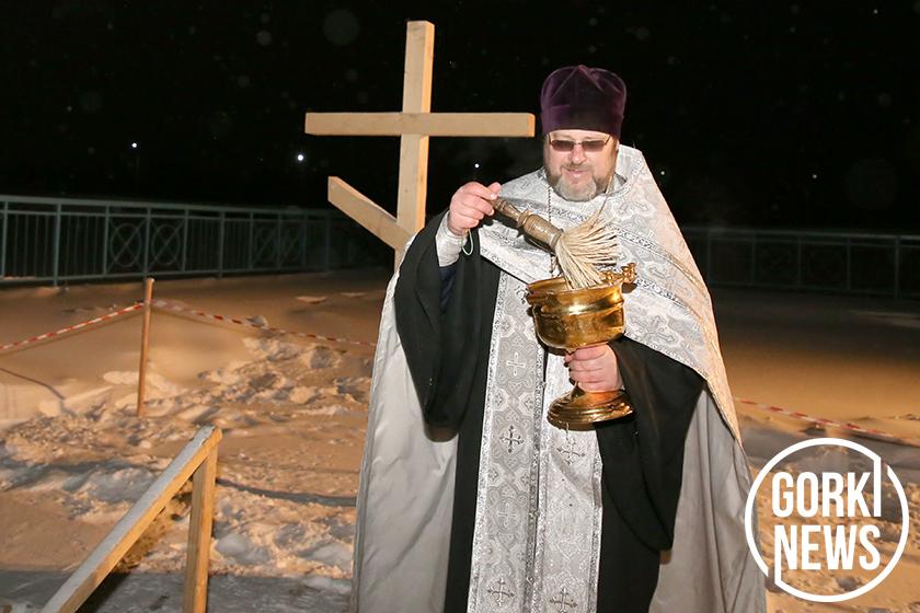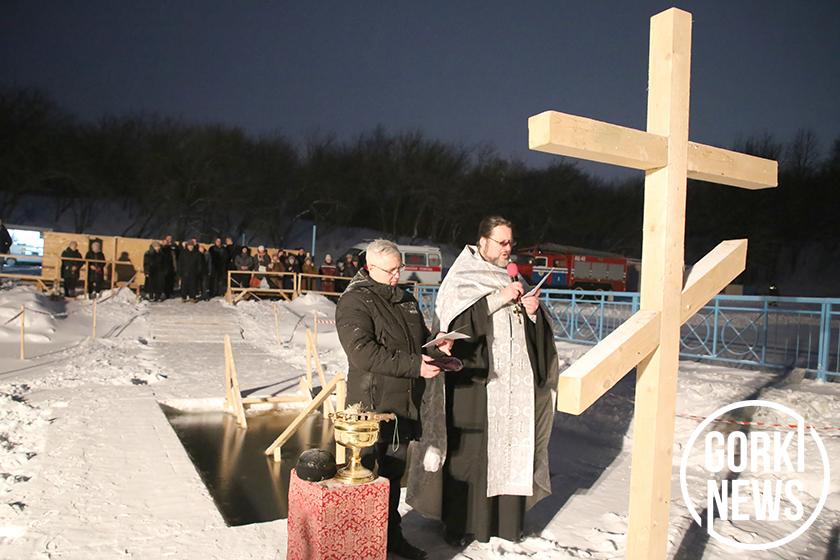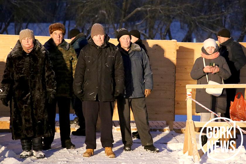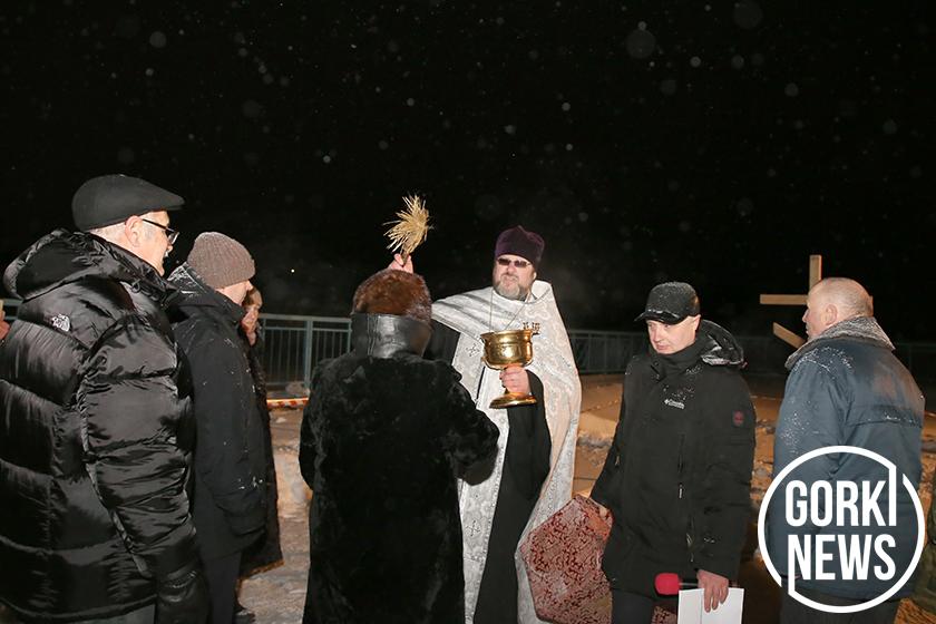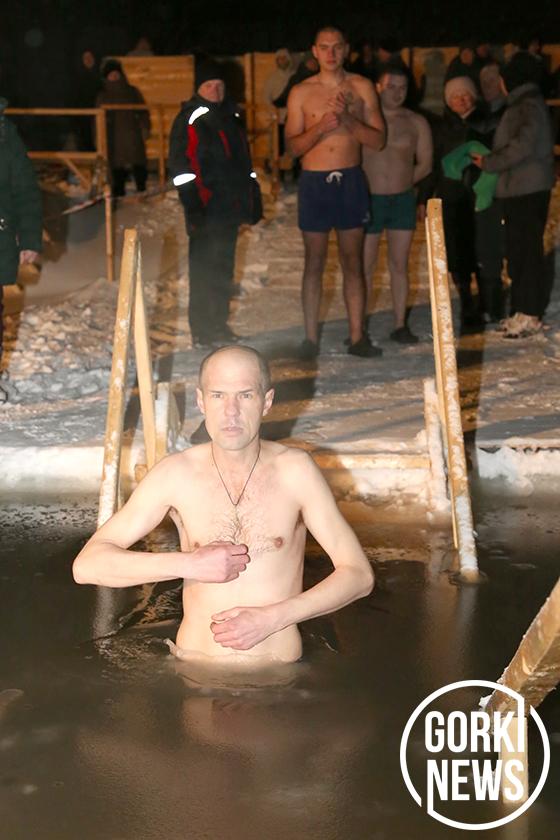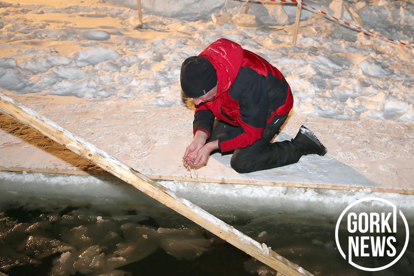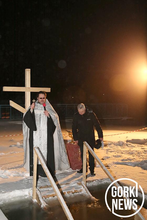 Место для окунания, как обычно, благоустроено —расчищено от снега, купель оборудована деревянной лестницей, положены настилы на лед, работают несколько прожекторов. На берегу поставили кабинки для раздевания, рядом можно было купить горячий чай. Безопасность в этот вечер обеспечивали спасатели и медработники.
